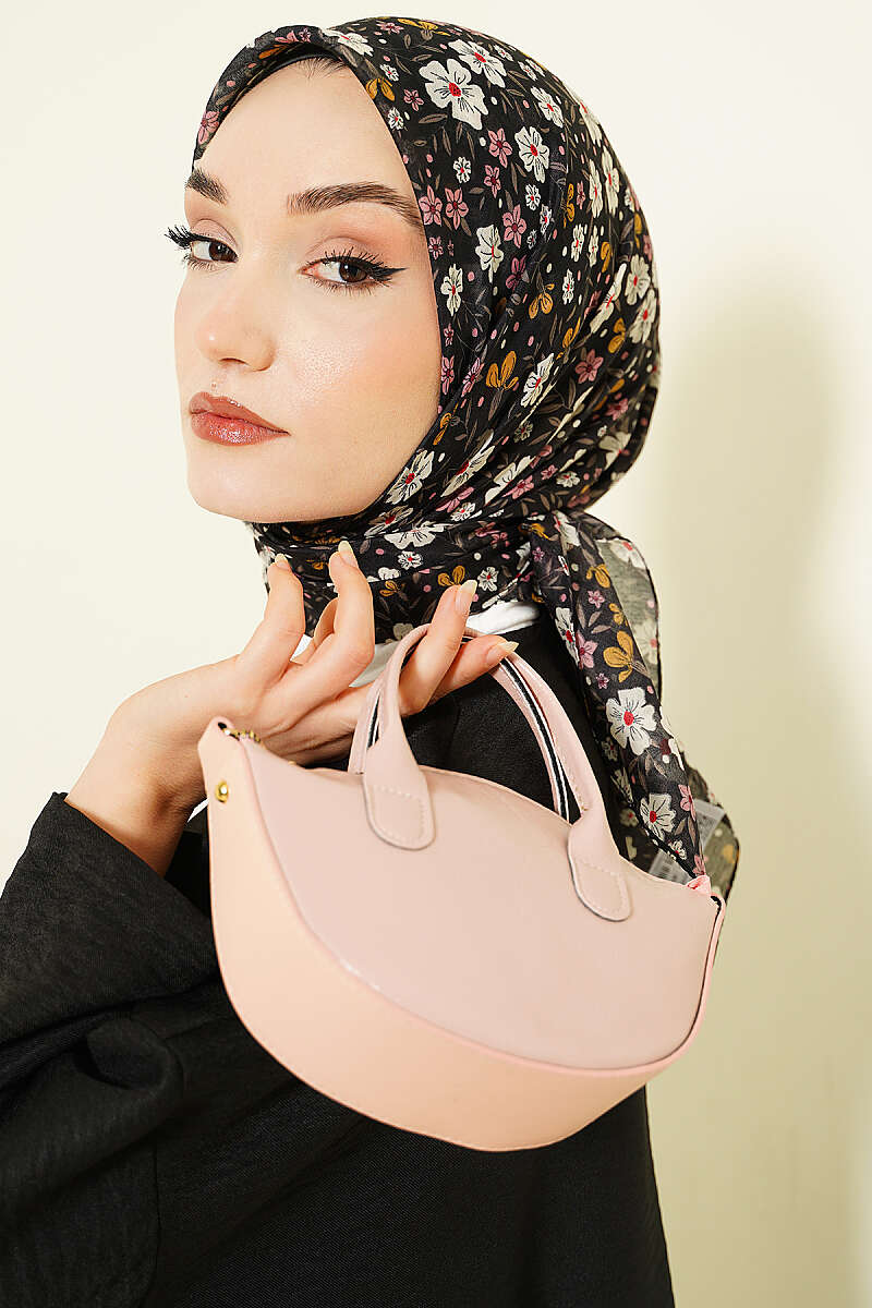 Çiçek Süslemeli Eşarp Siyah Bej