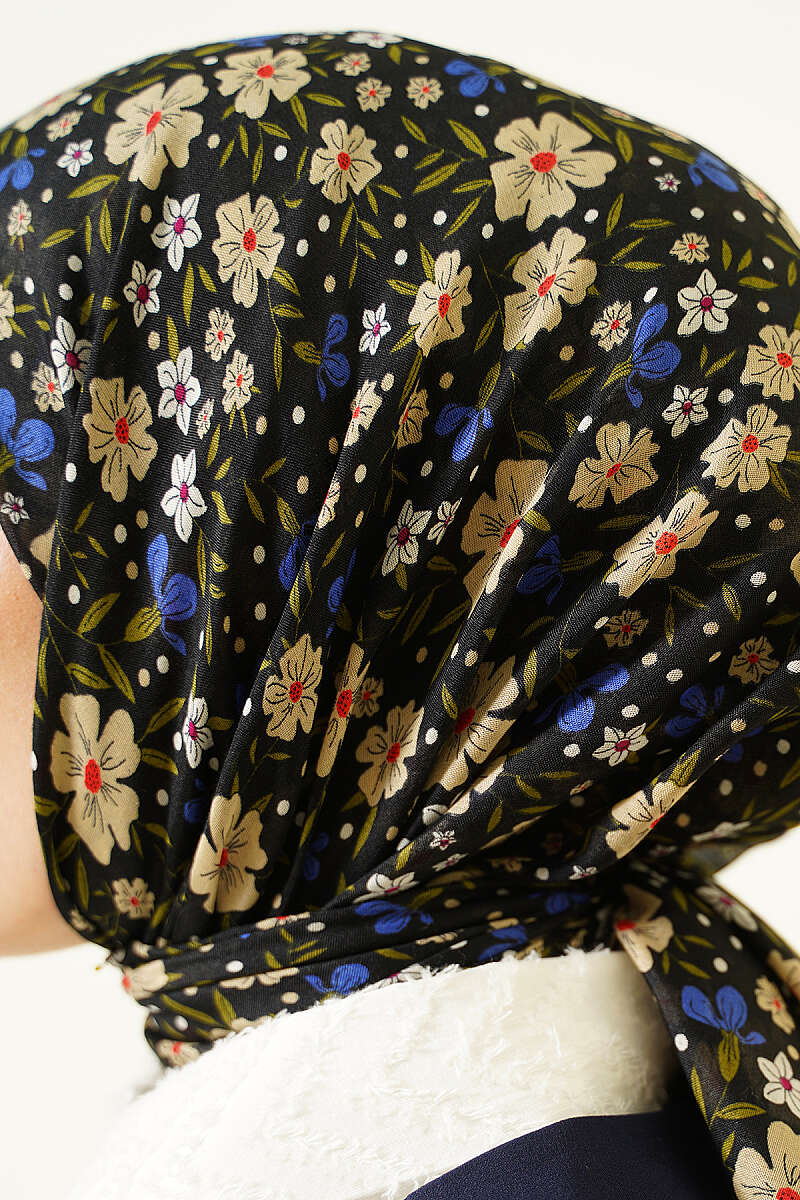 Çiçek Süslemeli Eşarp Siyah