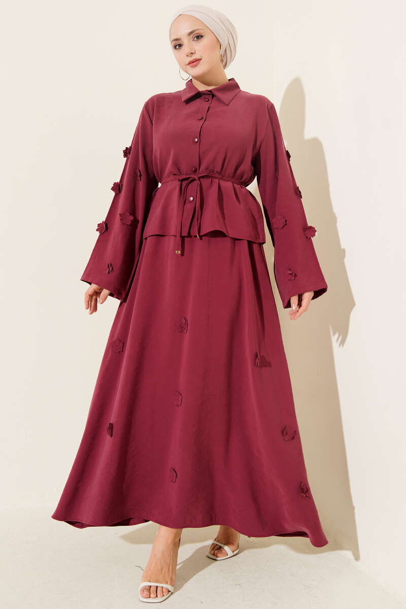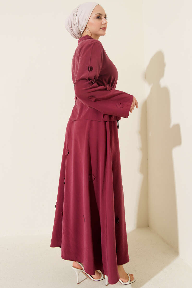 Çiçek Süslemeli Tensel Etekli Takım Kahve