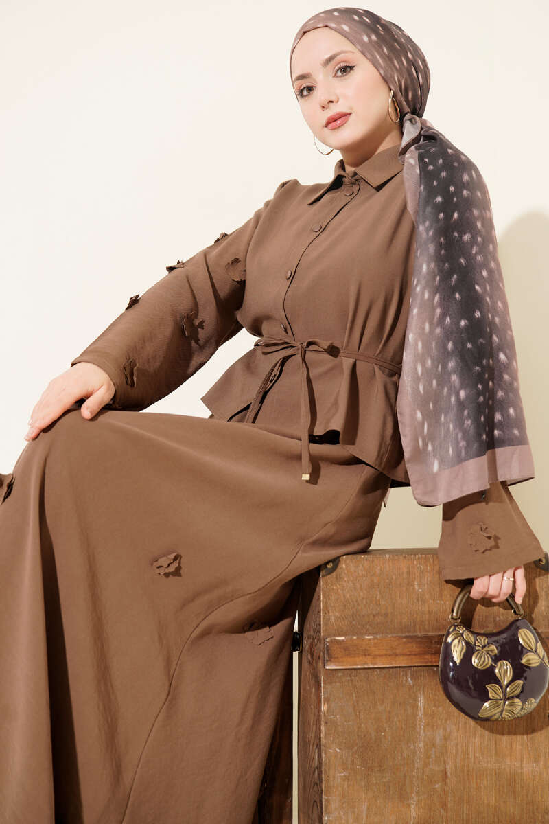 Çiçek Süslemeli Tensel Etekli Takım Kahve