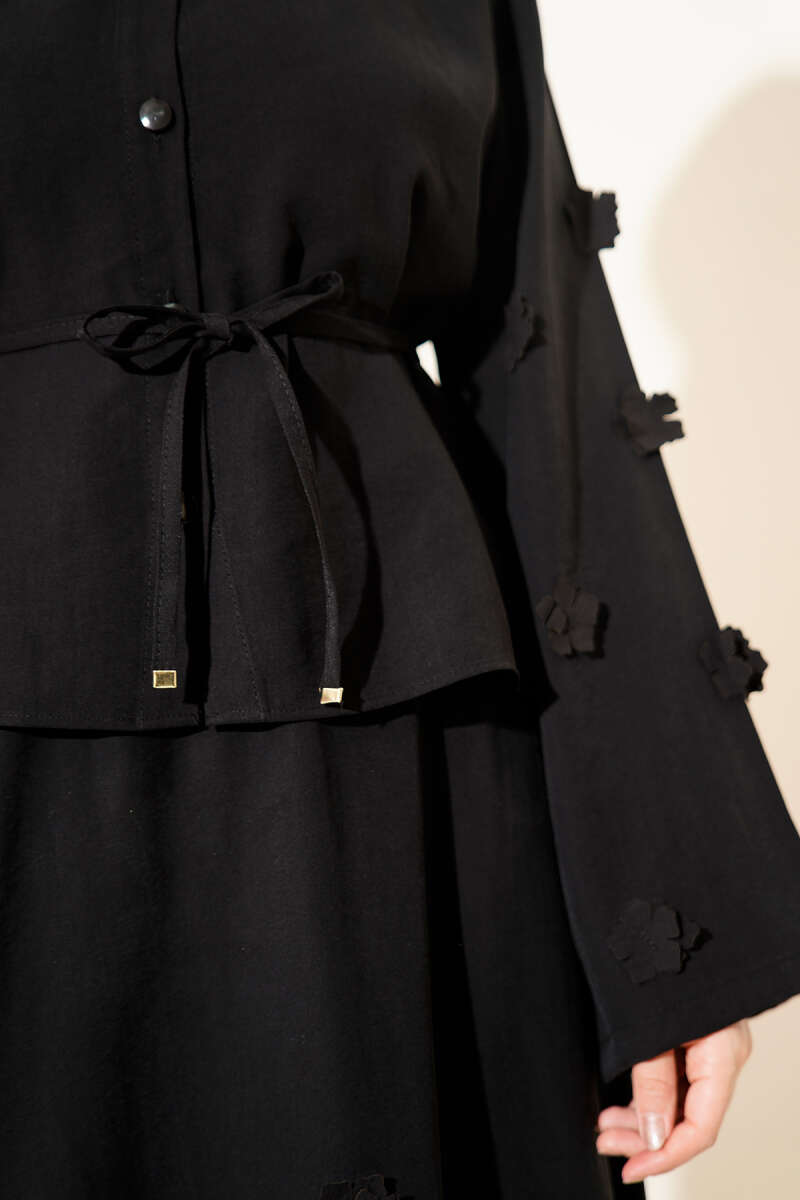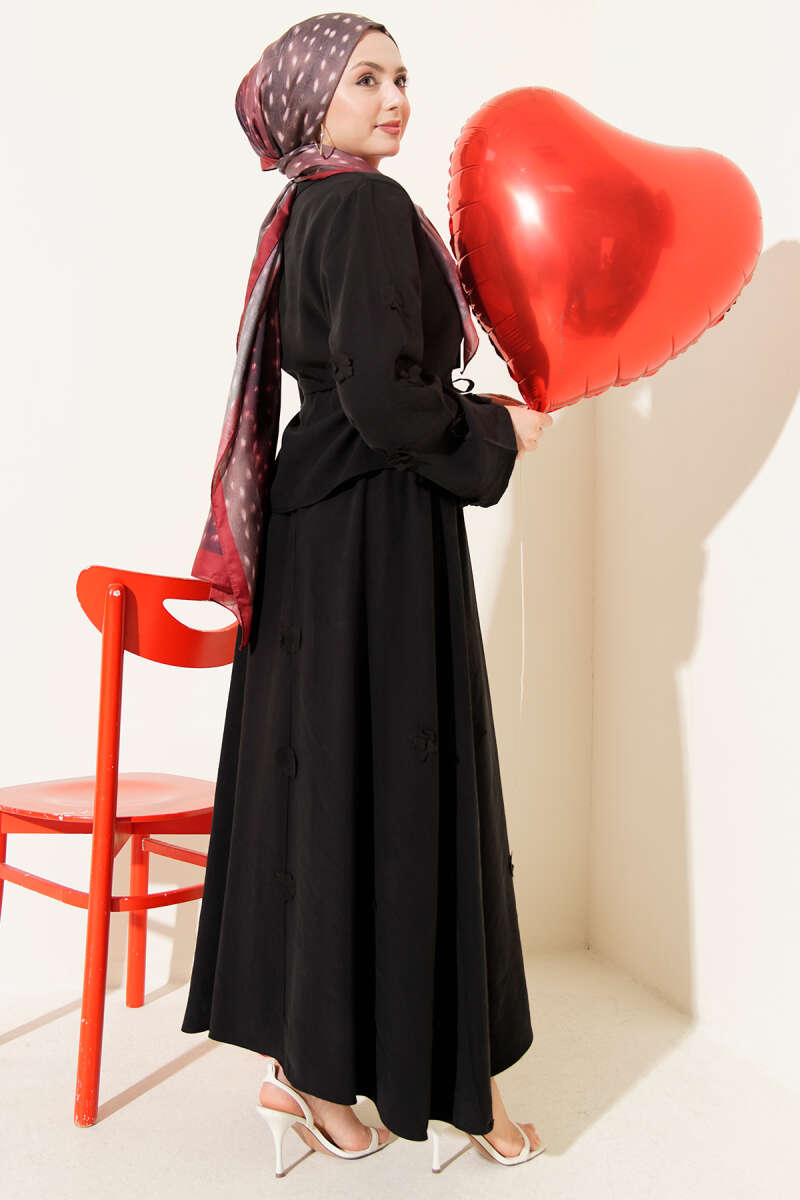 Çiçek Dantelli Taşlı Abiye İkili Takım Siyah