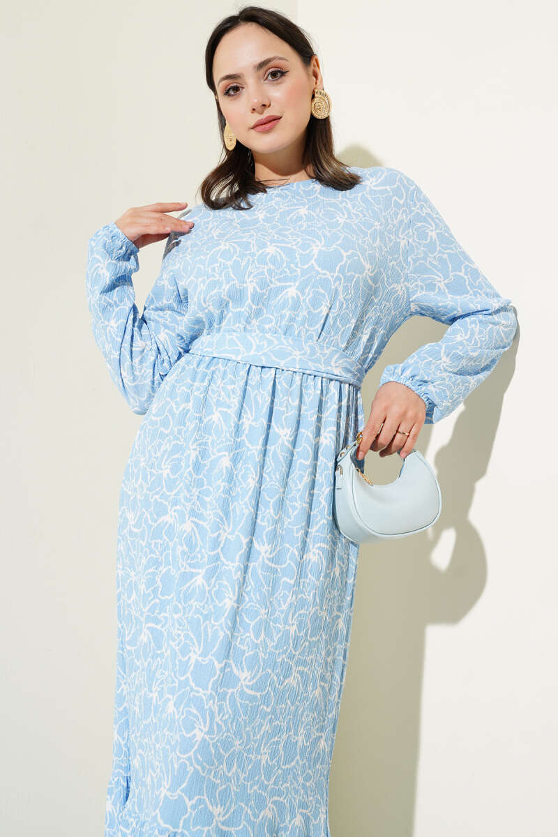 Çiçek Motifli Tül Pelerinli Abiye Elbise Bebe Mavi