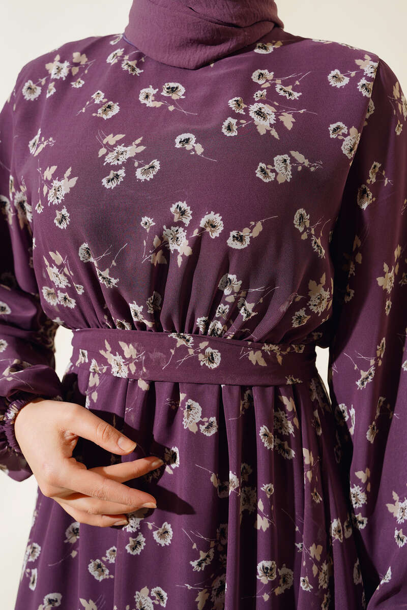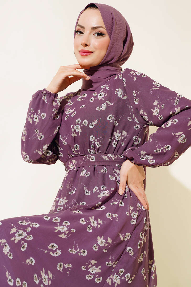 Yeni sezon elbisemiz çiçek desenleriyle hareketlilik kazanmıştır. Elbisemizin beli ve kol bilekleri lastiklidir. Oval yakadır. Elbisemizin kendi kumaşından kuşağı vardır. Enseden düğmelidir. Kat modeldir. Astarlıdır.