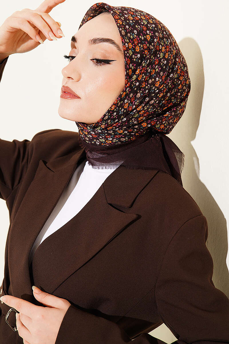 Çiçekli Flamu Cotton Eşarp Kahve