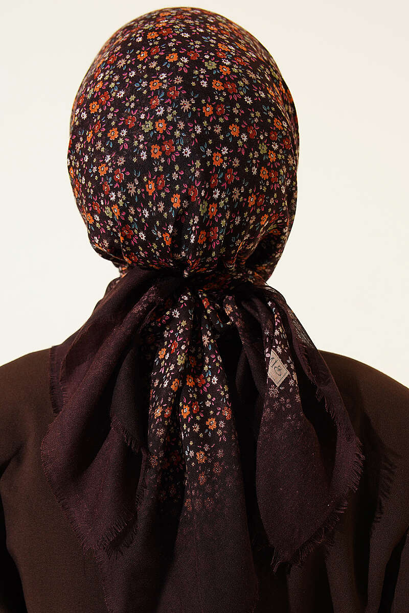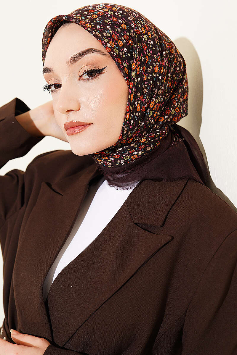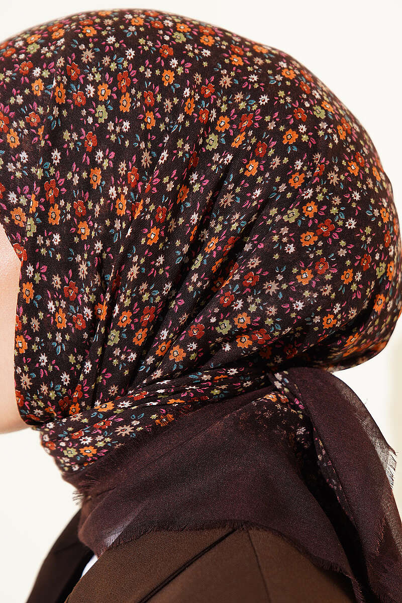 Çiçekli Flamu Cotton Eşarp Acı Kahve
