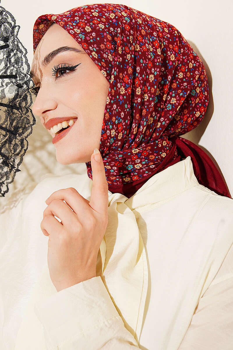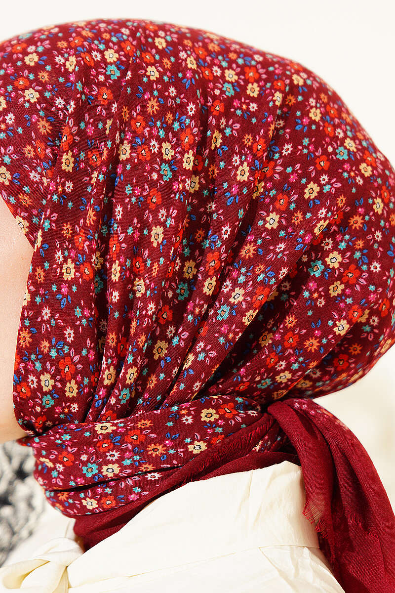 Çiçekli Flamu Cotton Eşarp Bordo