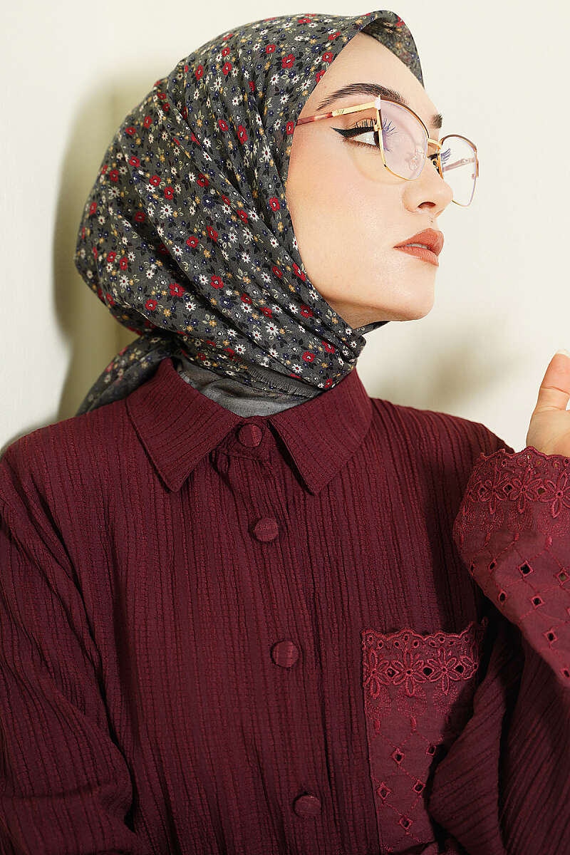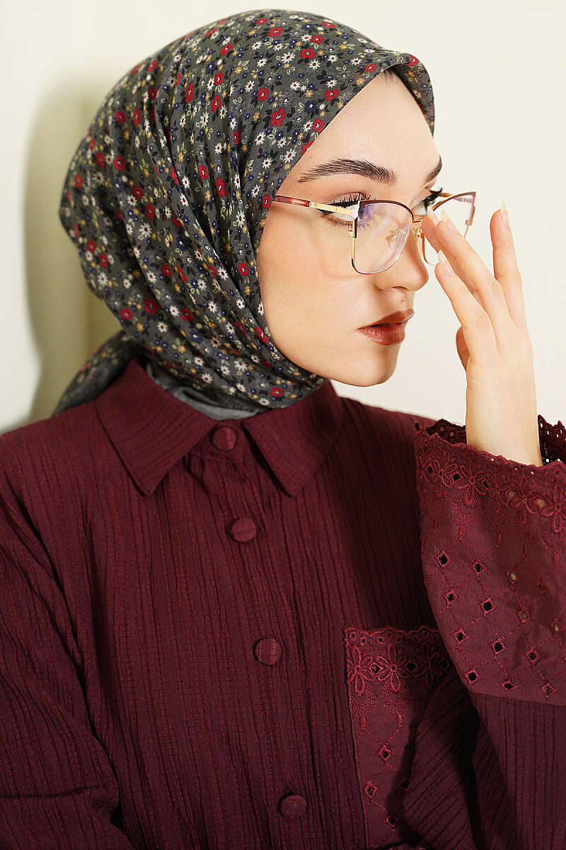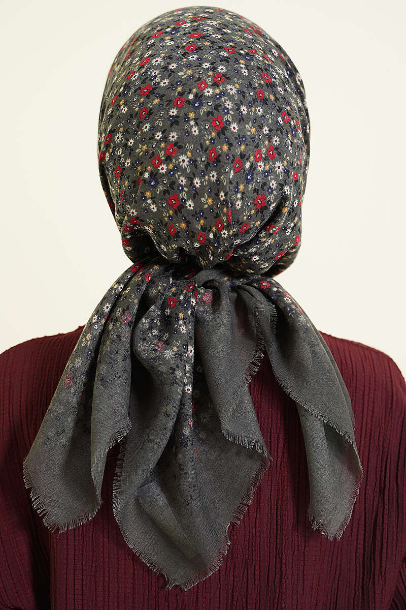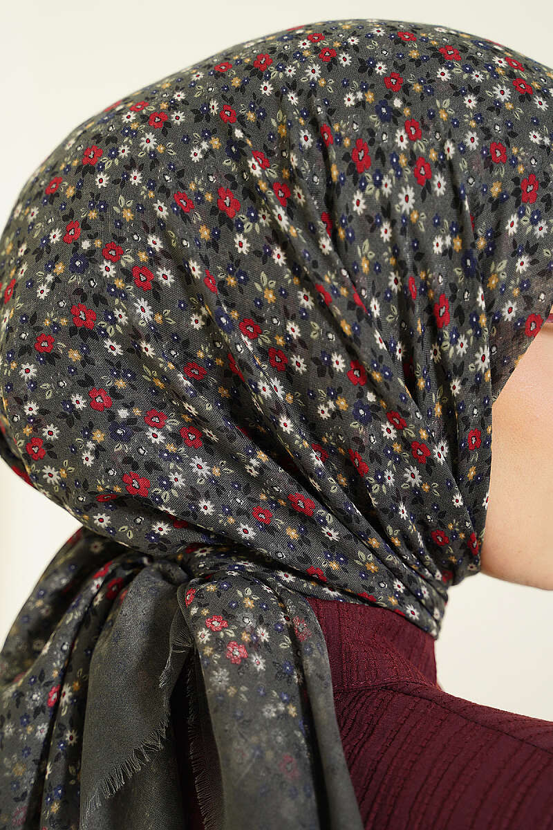 Çiçekli Flamu Cotton Eşarp Lacivert