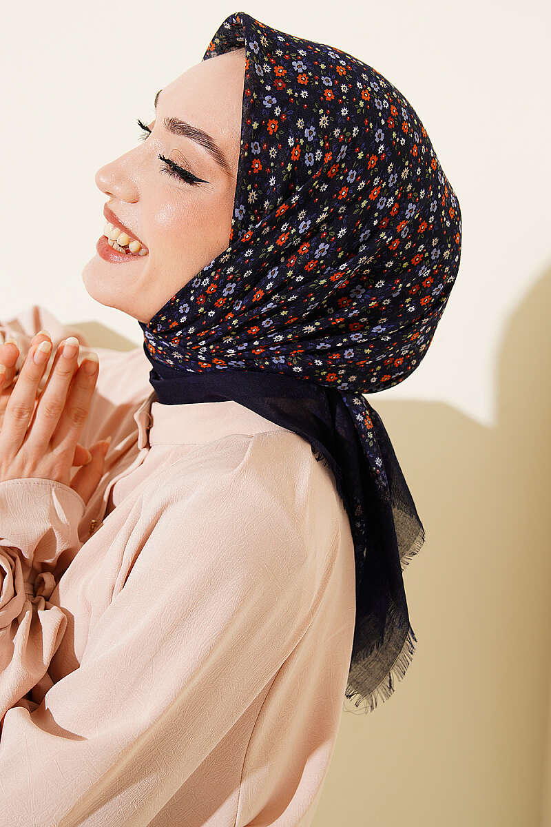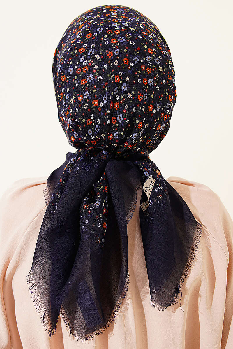 Çiçekli Flamu Cotton Eşarp Lacivert