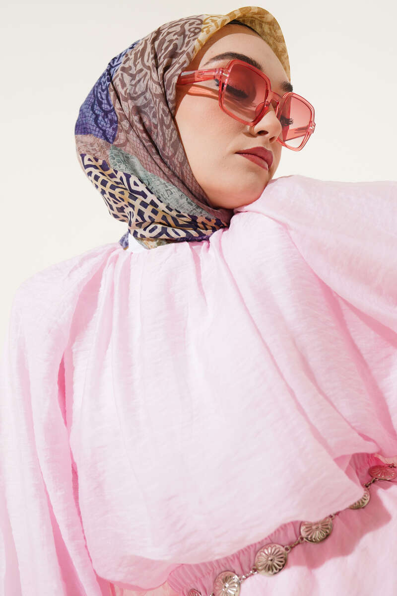 Çiçekli Karışık Desenli Eşarp Gül Kurusu