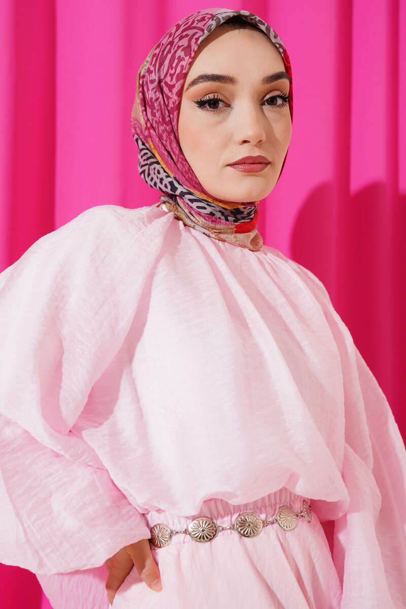 Çiçekli Karışık Desenli Eşarp Kırmızı