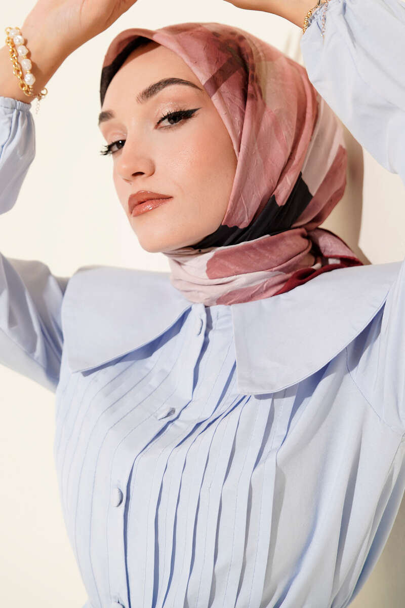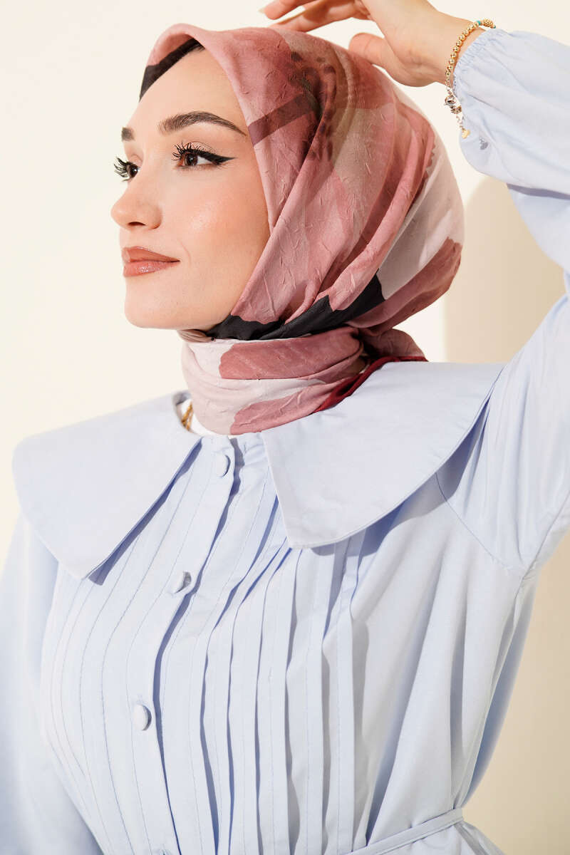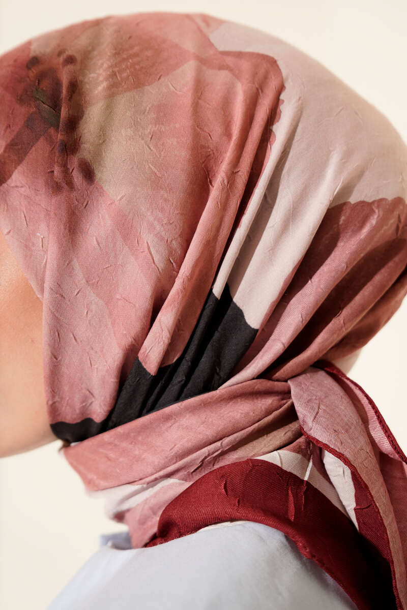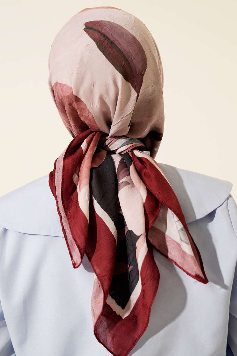 Çiçekli Şeritli Bambu Kraş Eşarp Bordo