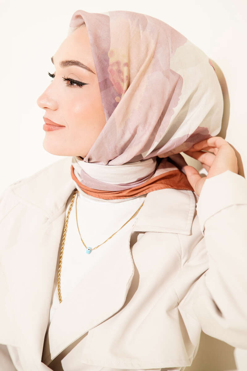 Çiçekli Şeritli Bambu Kraş Eşarp Yavru Ağzı