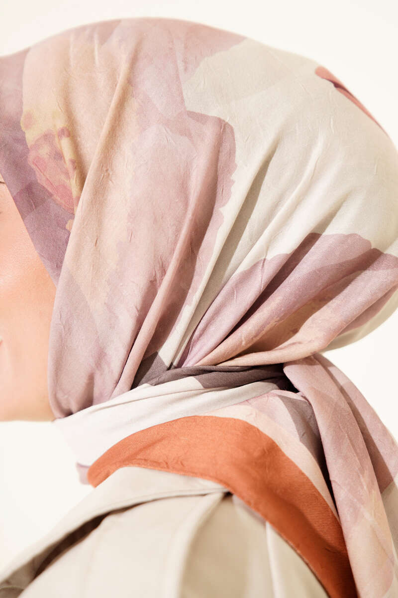 Çiçekli Şeritli Bambu Kraş Eşarp Latte