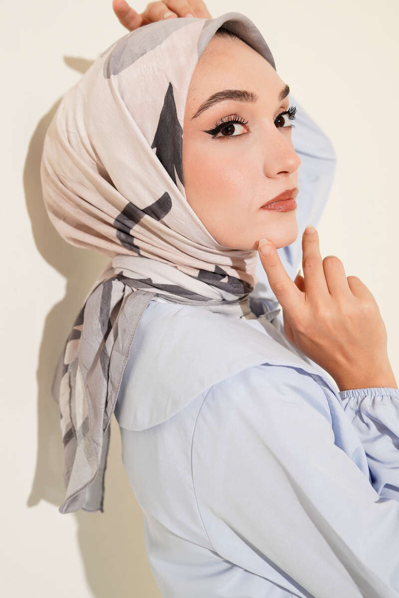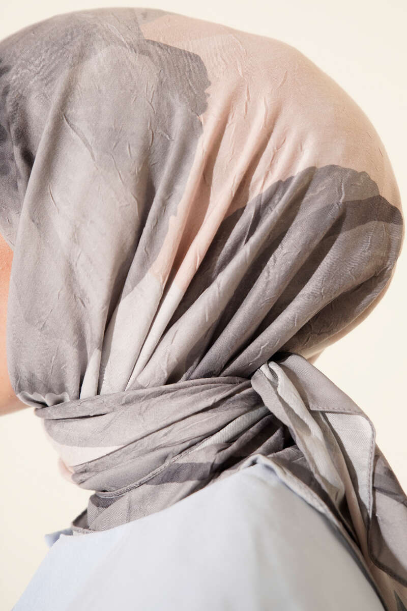Arya Otantik Desenli Eşarp Gri