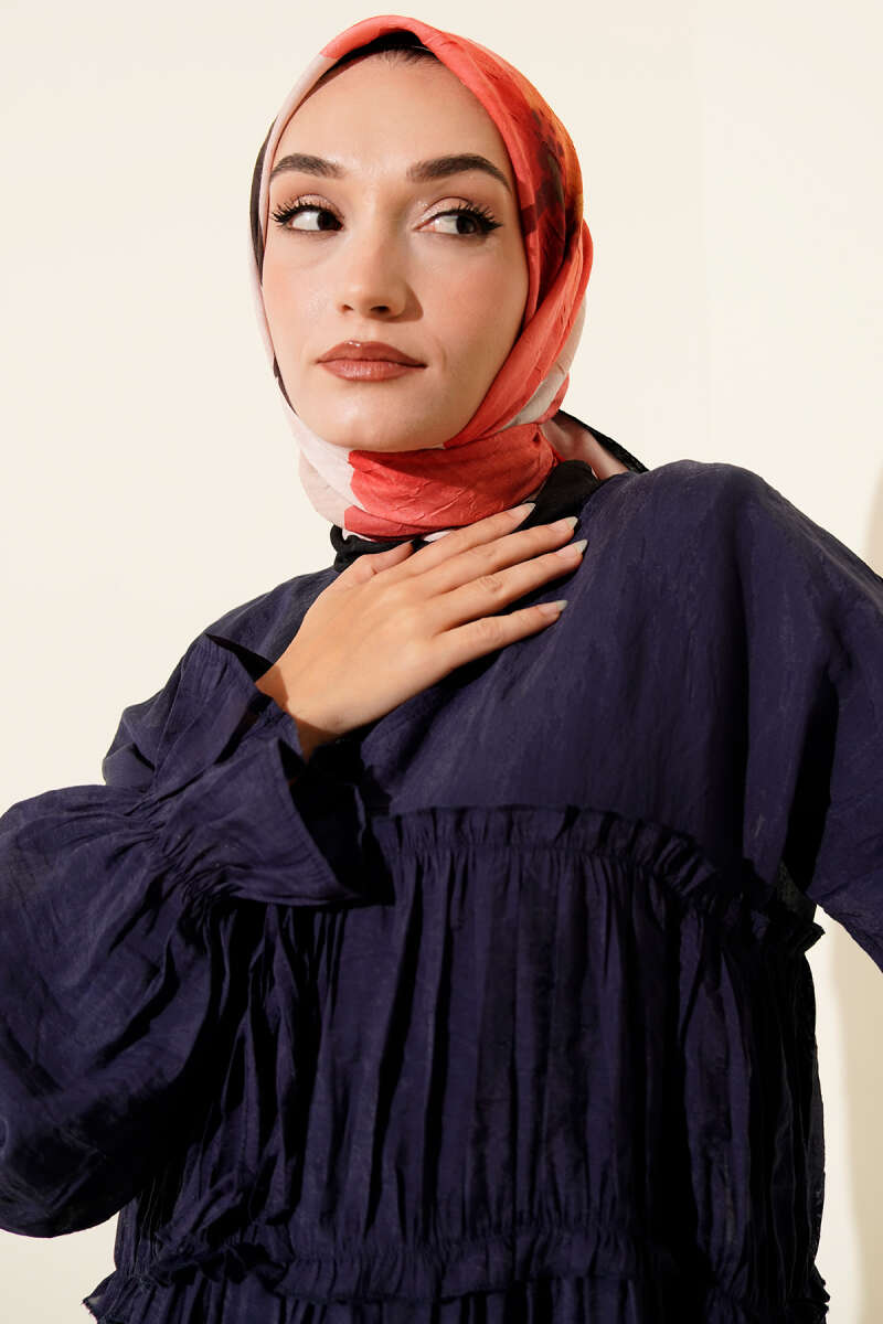 Arya Otantik Desenli Eşarp Lacivert