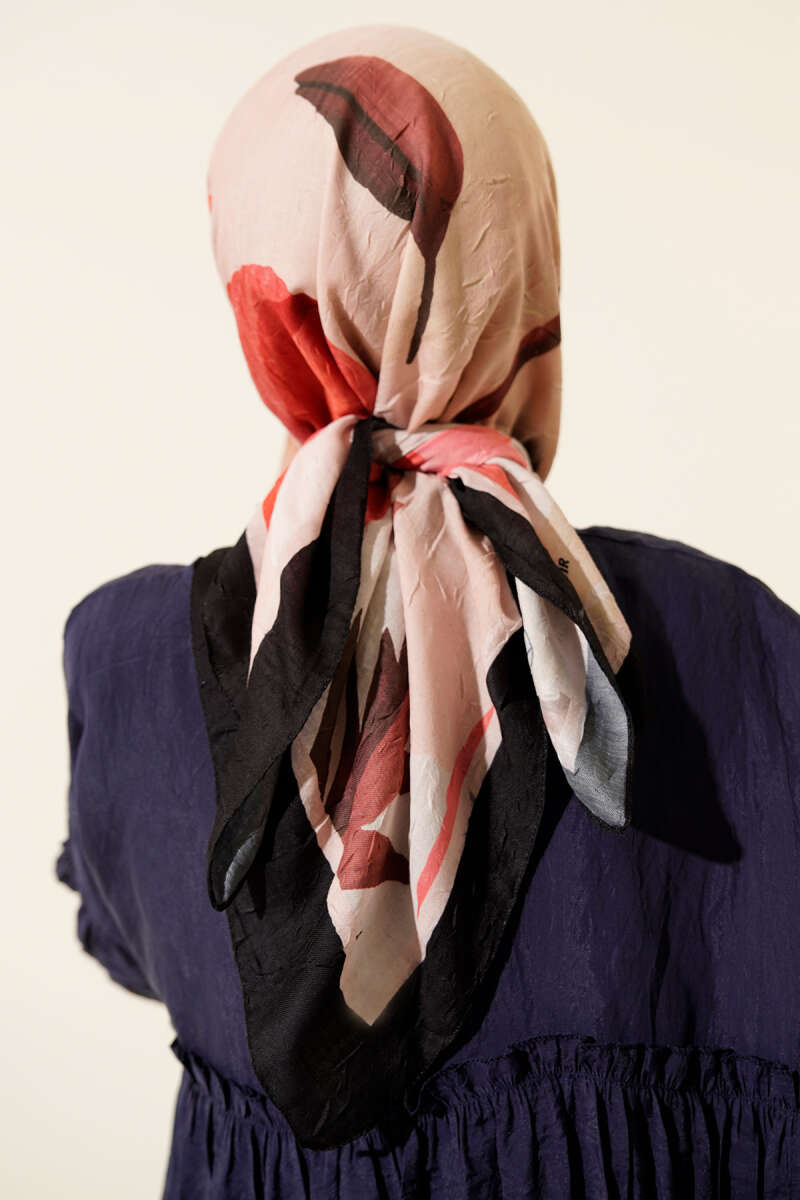 Vintage Rose Desen Şal Siyah Latte -05