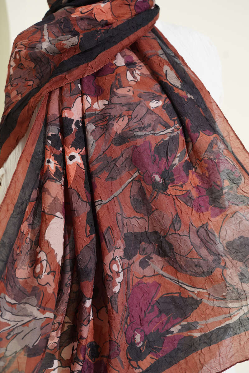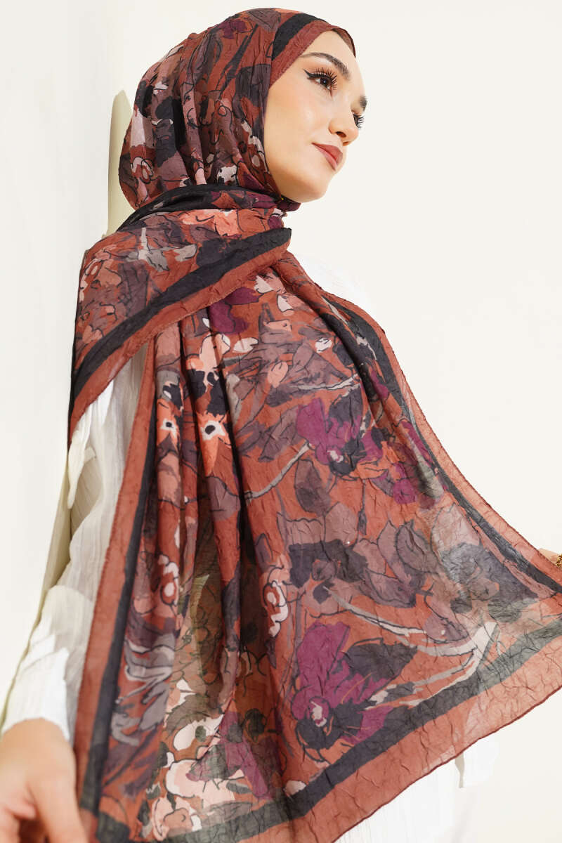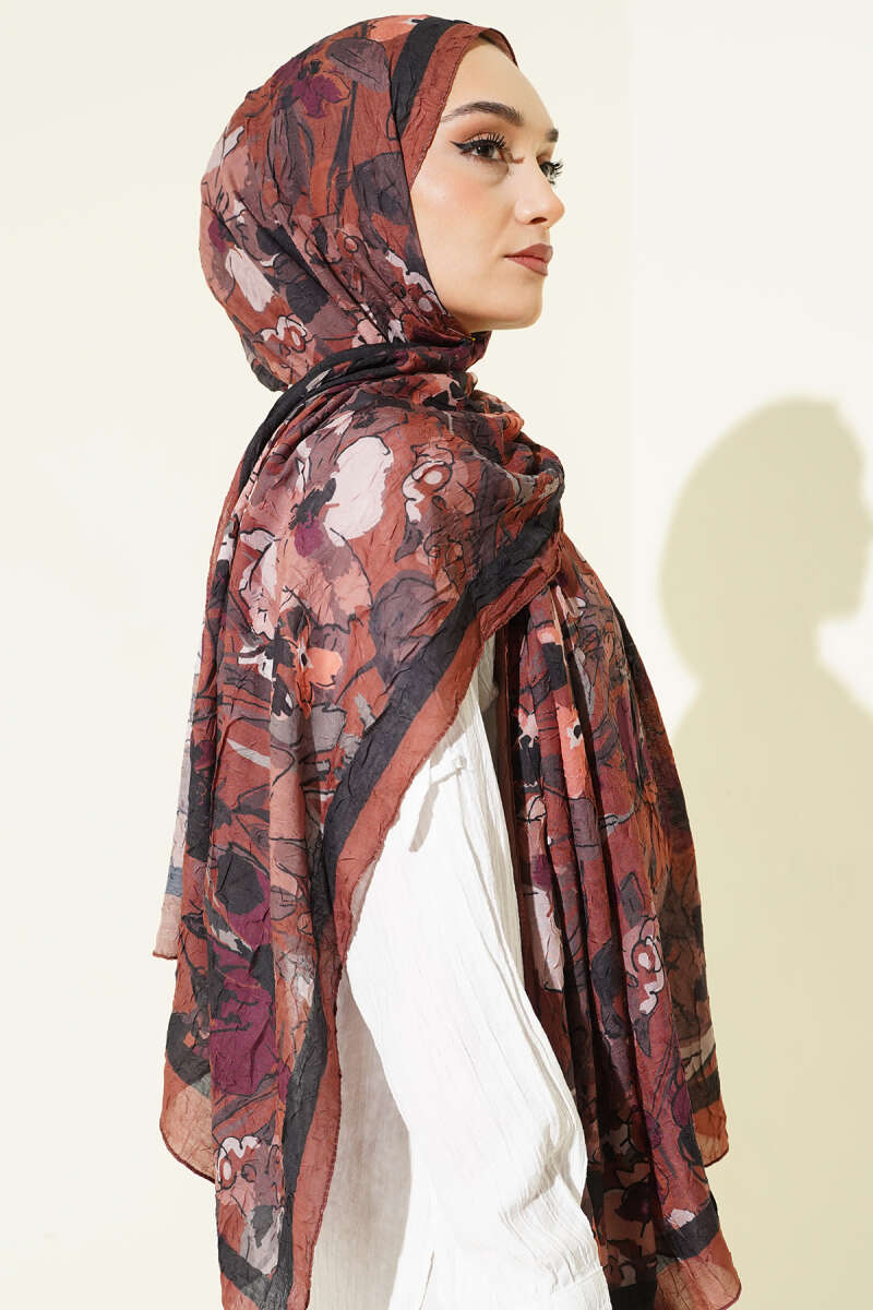 Çiçekli Soft Bambu Kraş Şal Kahve