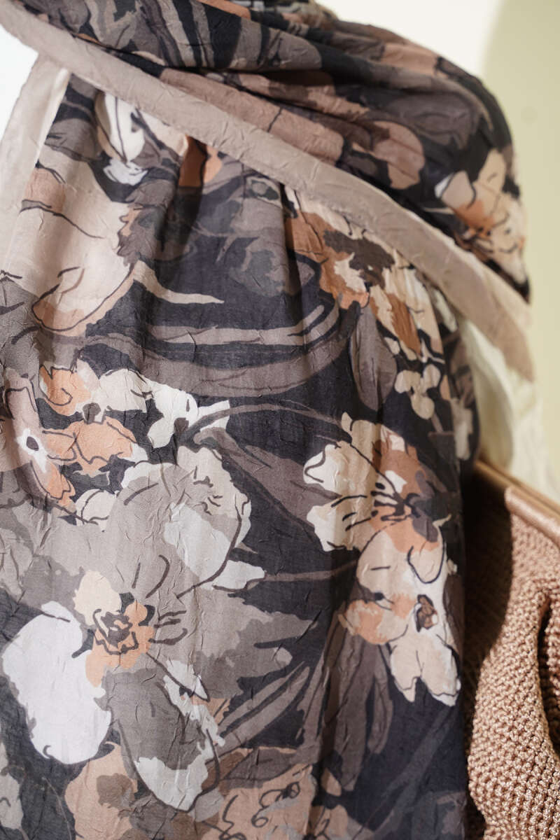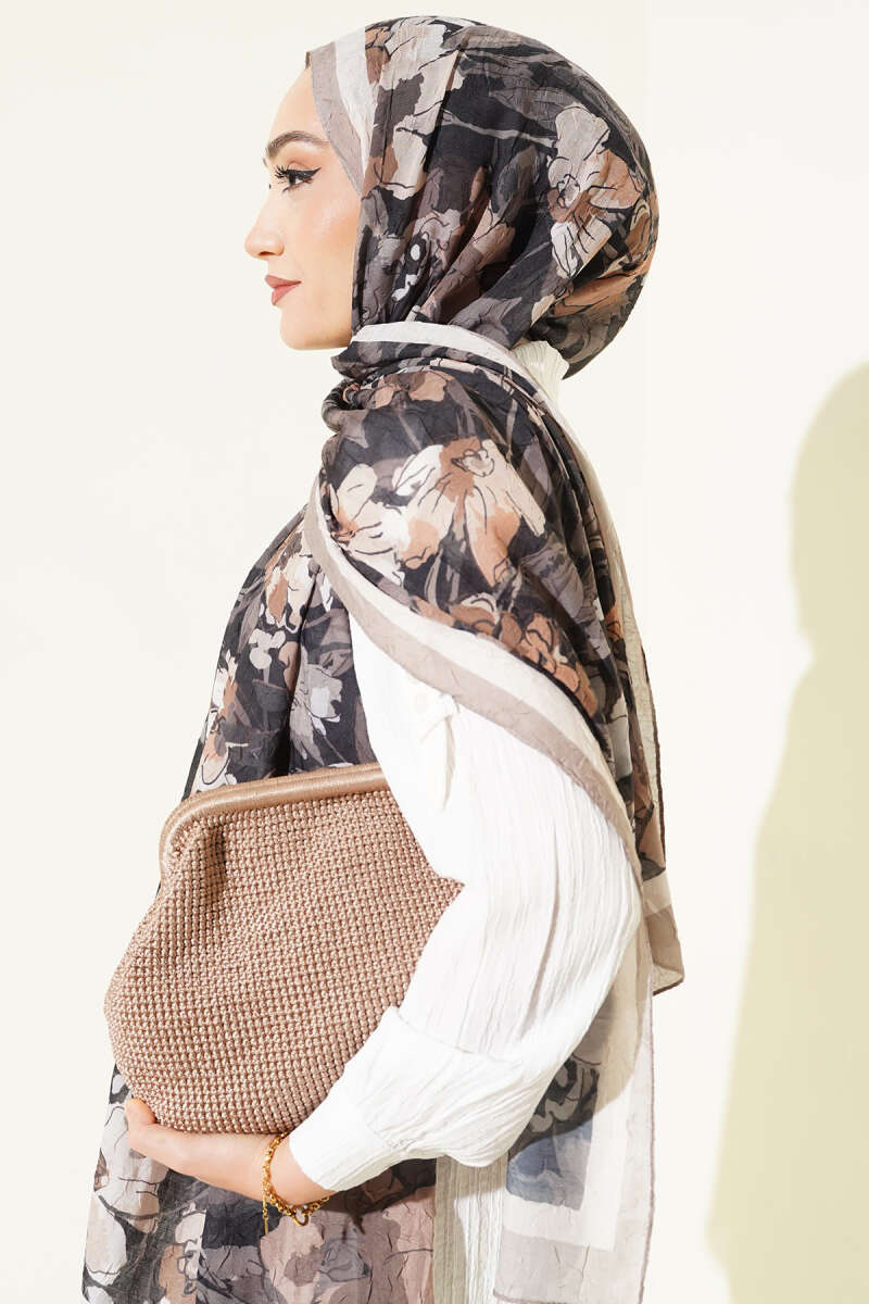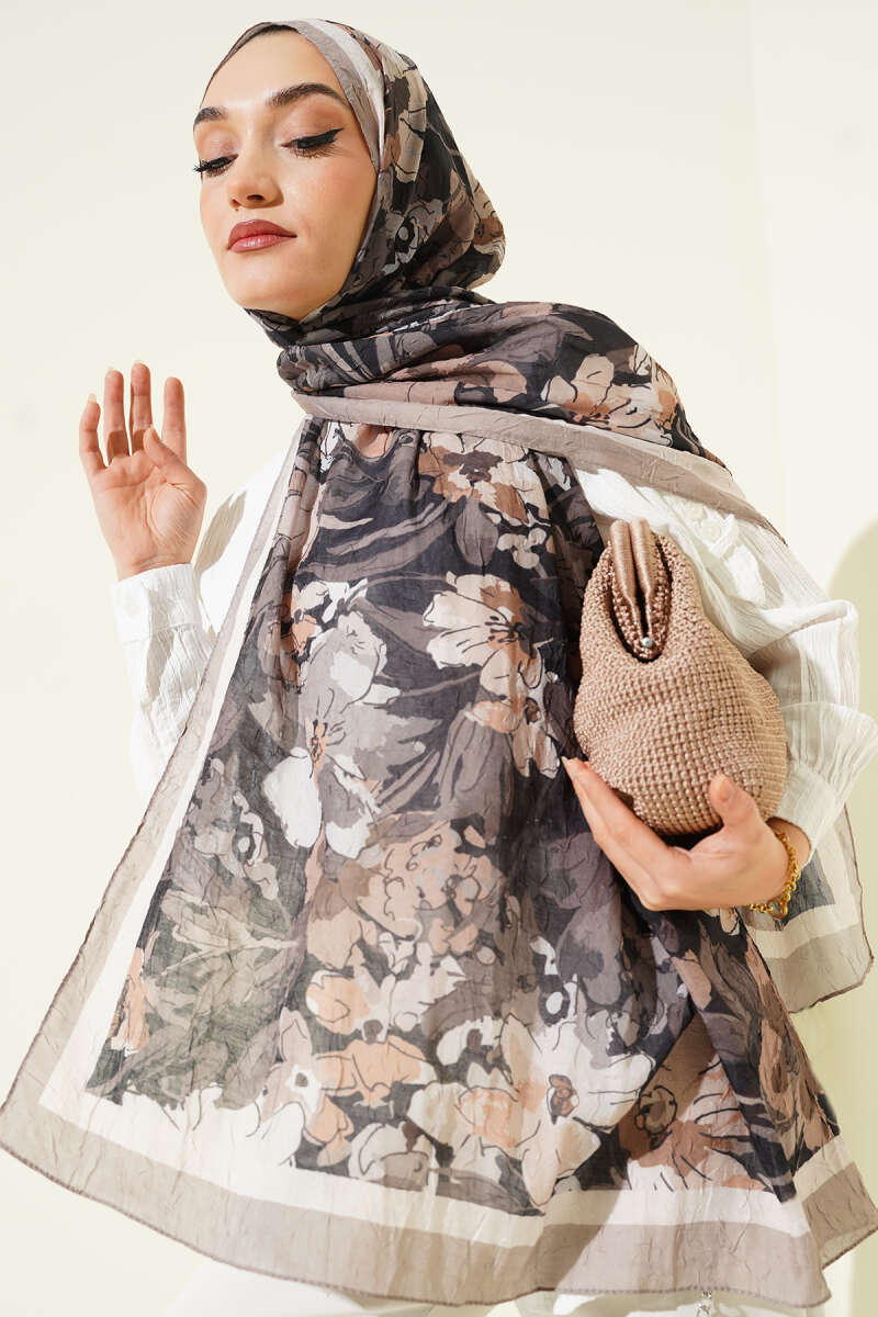 Çiçekli Soft Bambu Kraş Şal Kum Bej