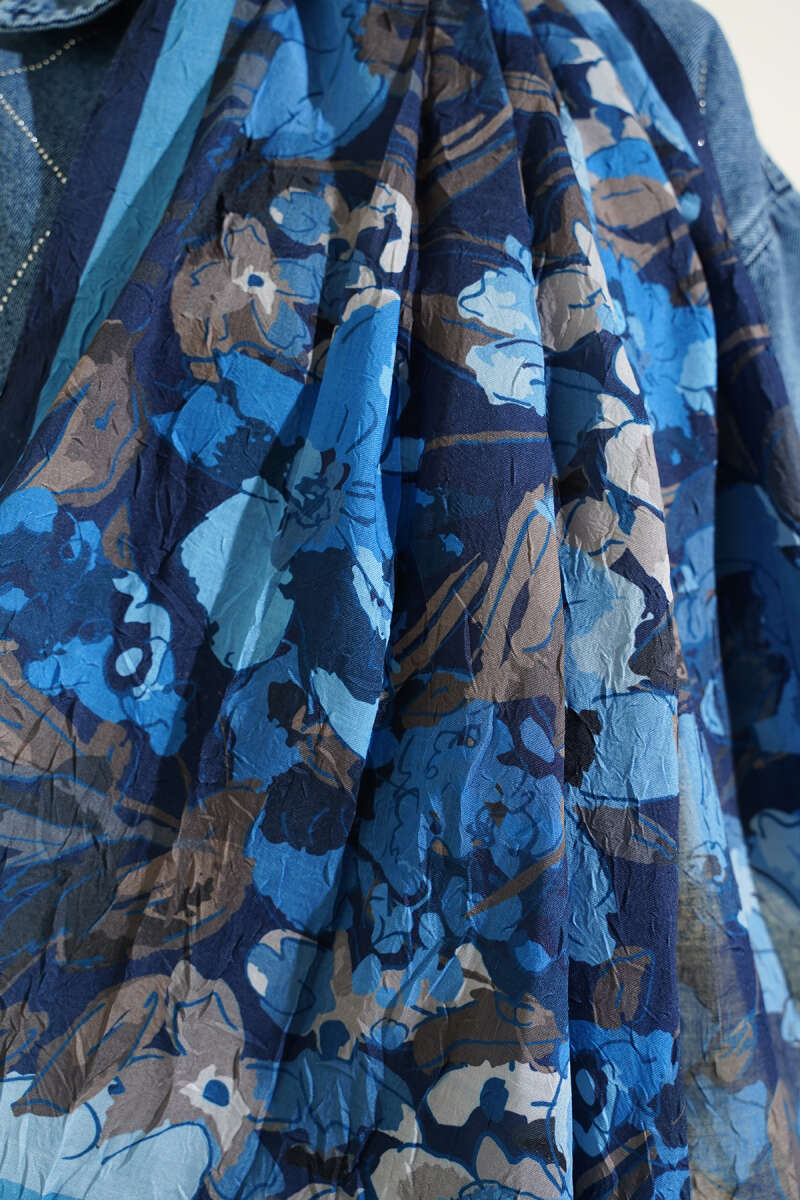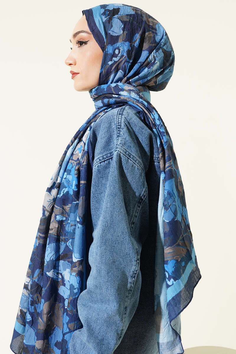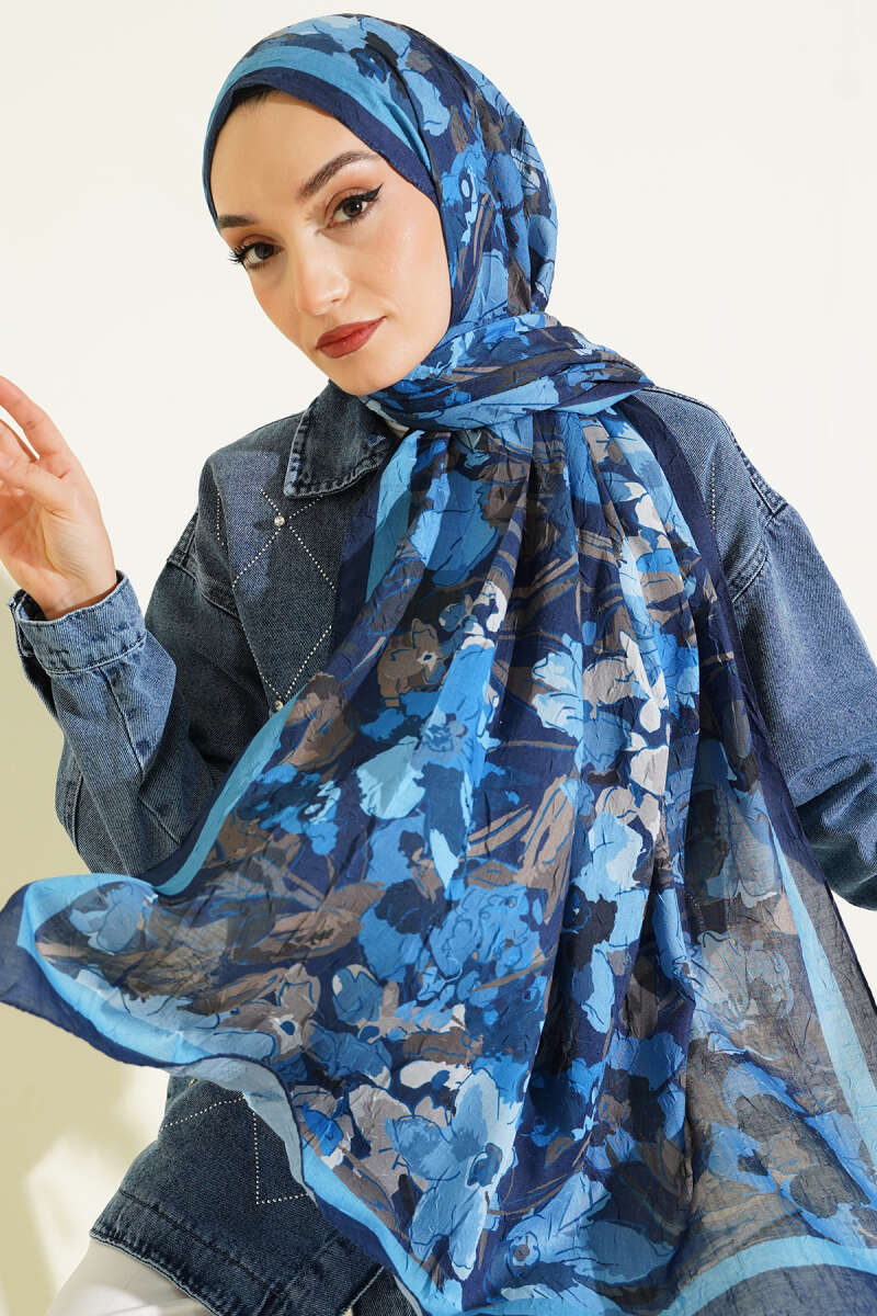 Çiçekli Soft Bambu Kraş Şal Lacivert