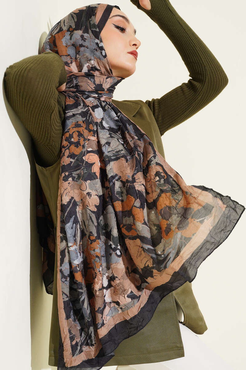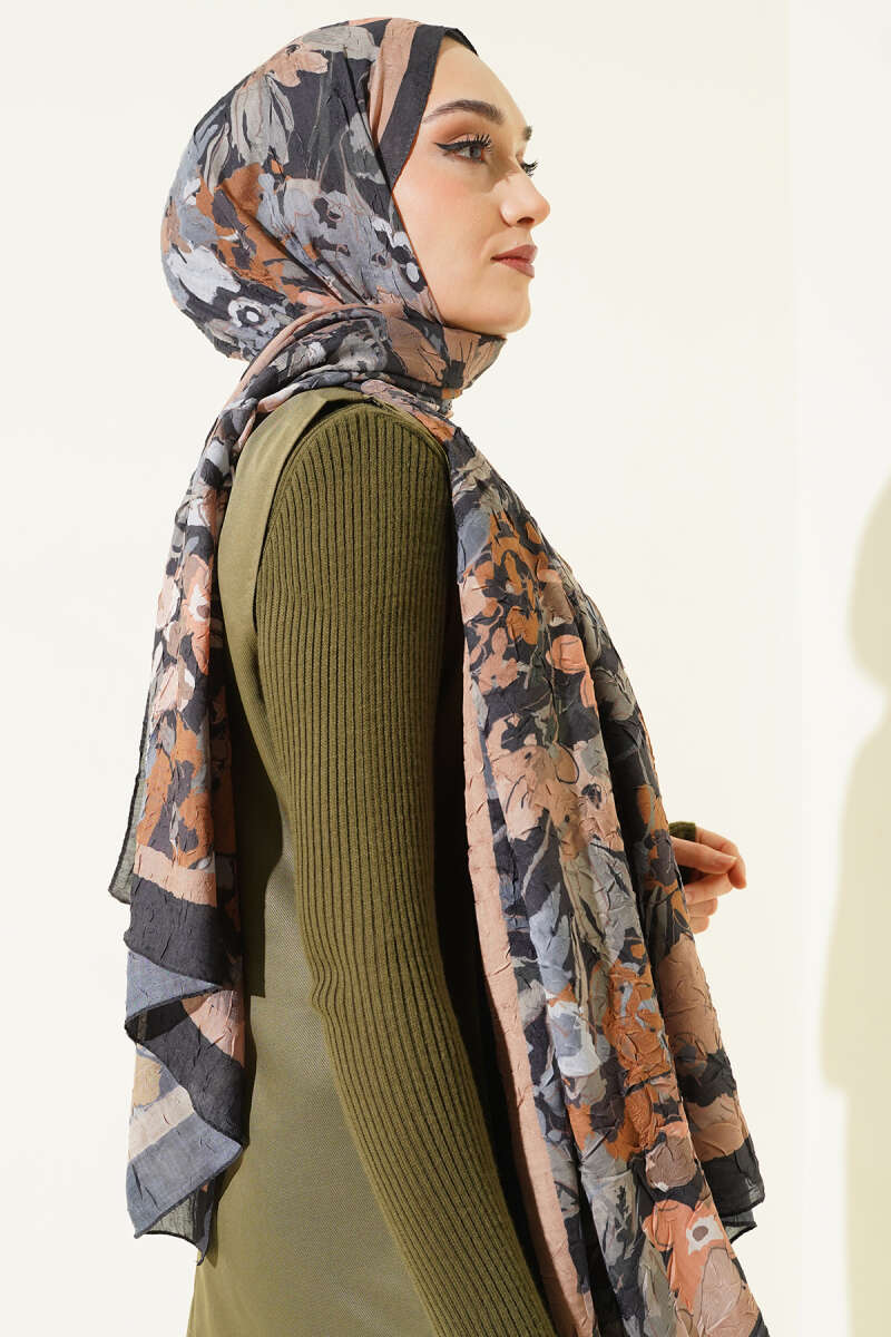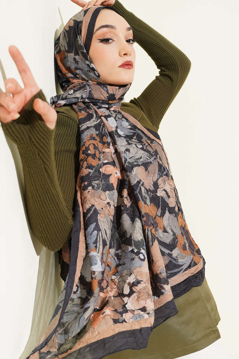Çiçekli Soft Bambu Kraş Şal Siyah