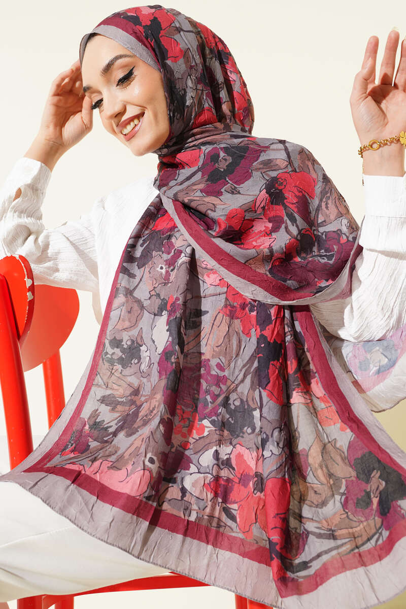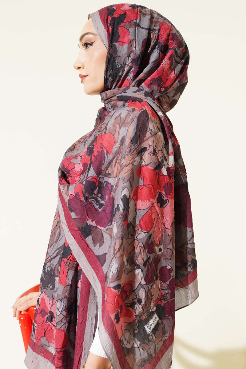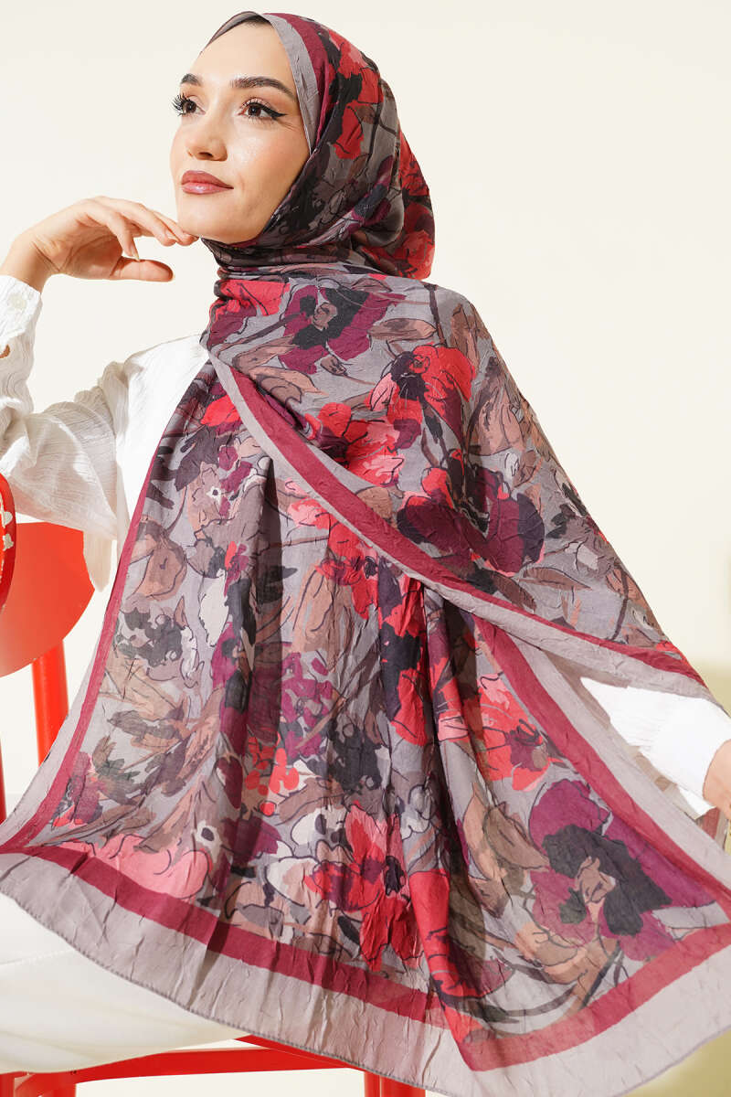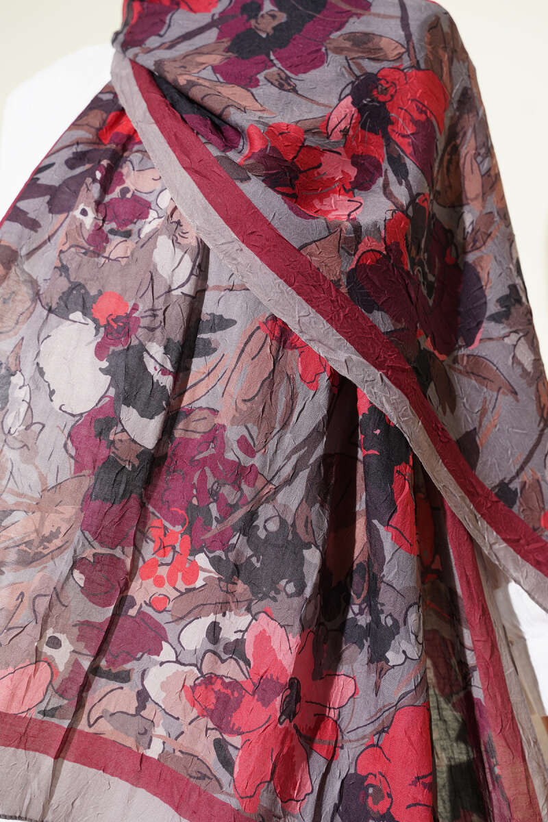 Kemerli Ekose Desenli Etek Bordo