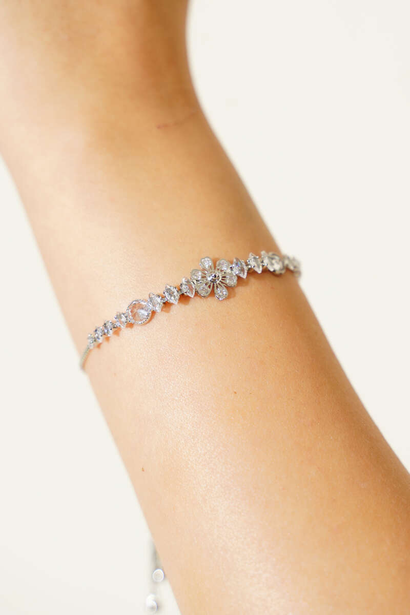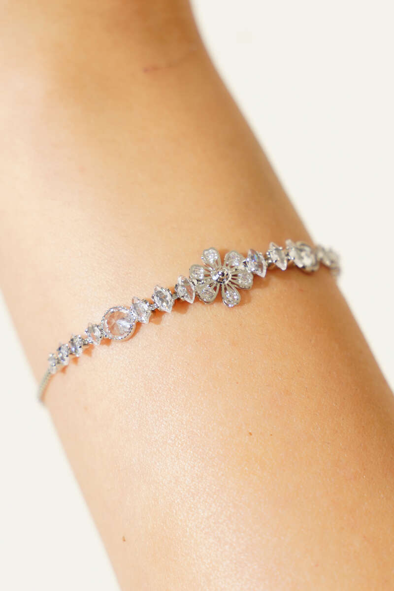 Çiçekli Taş Detaylı Bileklik Gümüş