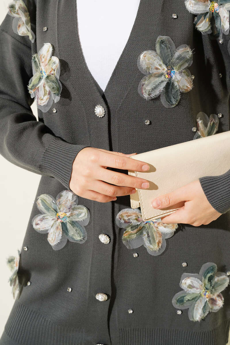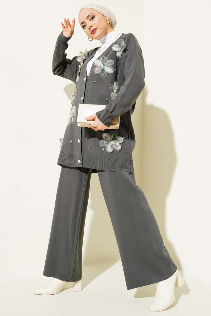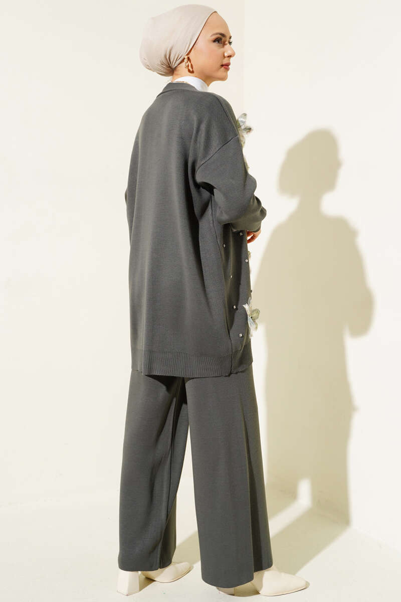 Balon Kol Balıkçı Yaka Triko İkili Takım Gri