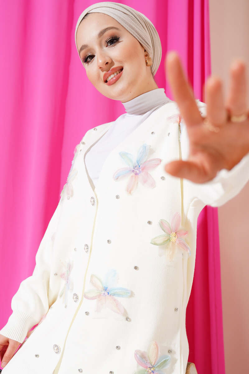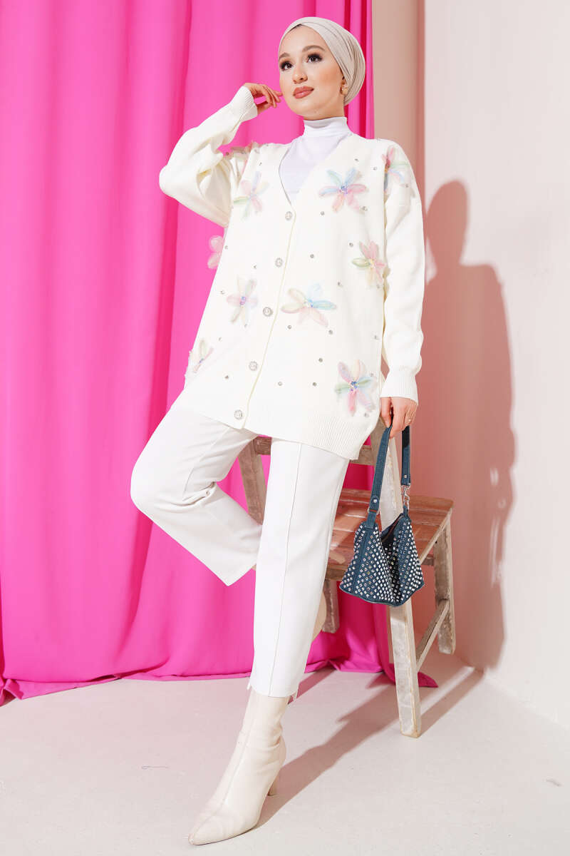 Pirinç Örgü Basic Triko Hırka Nar Çiçeği