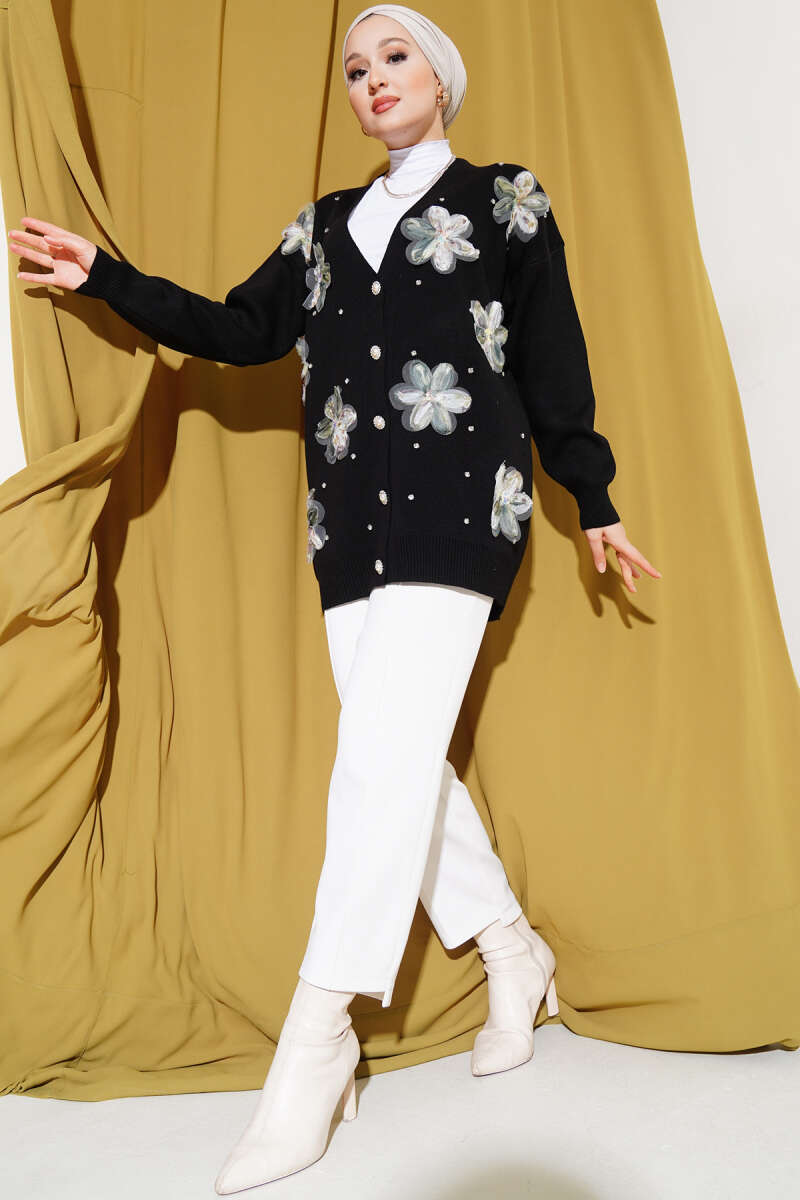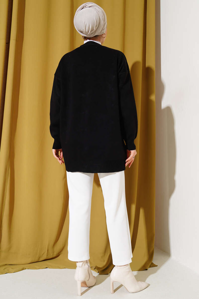 Çoban Dikiş Detaylı Triko Tunik Siyah
