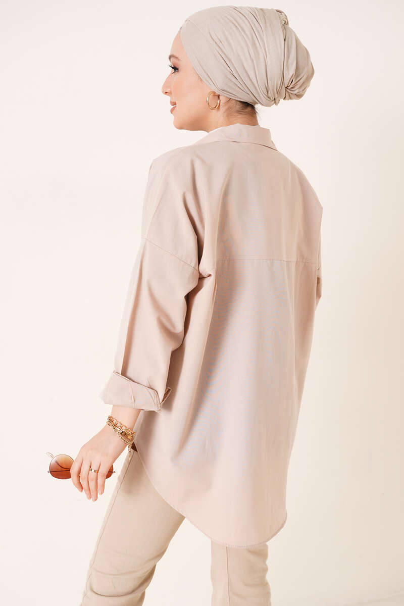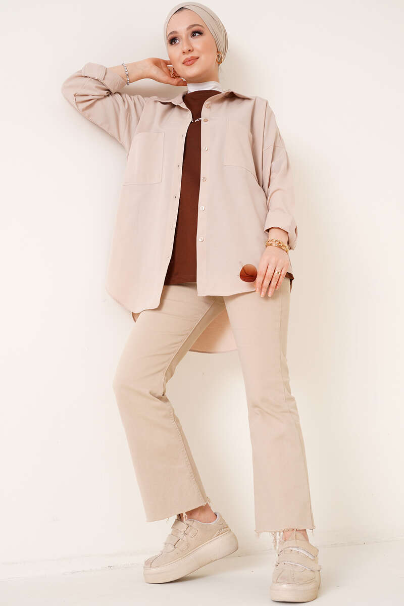Çift Cep Gömlek Bej