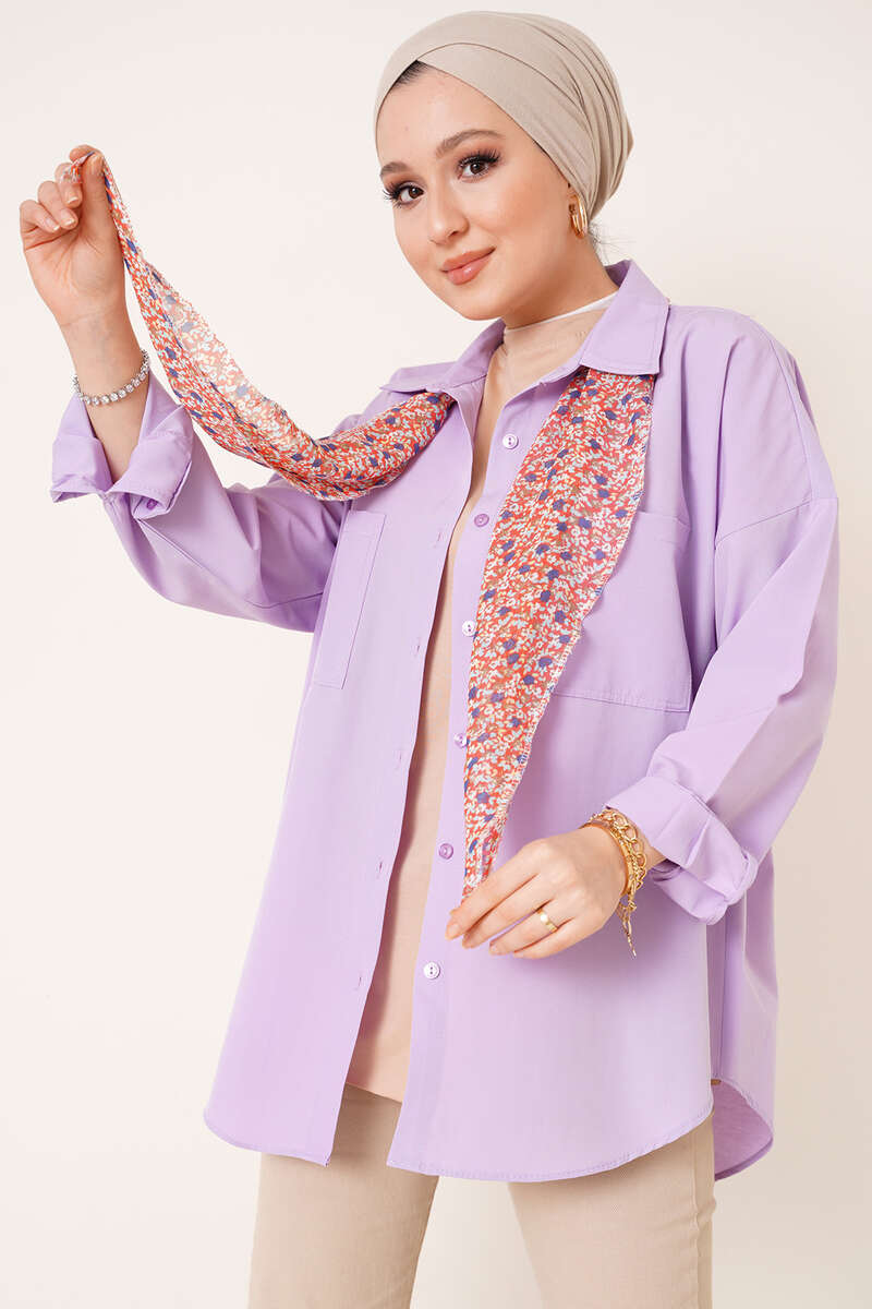 Çift Cep Gömlek Lila