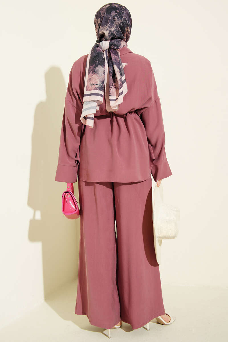Asimetrik Parçalı Kuşaklı Sandy İkili Takım Kahve