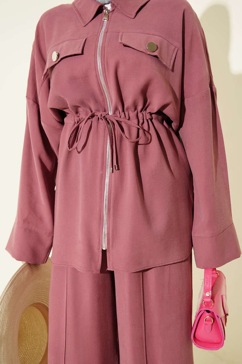 Fermuarlı Beli Tünelli İkili Takım Haki