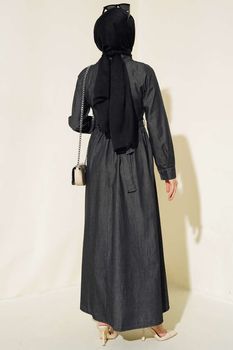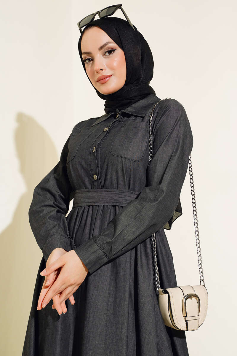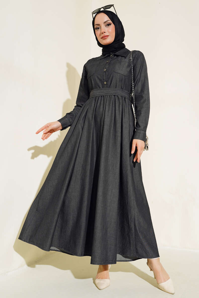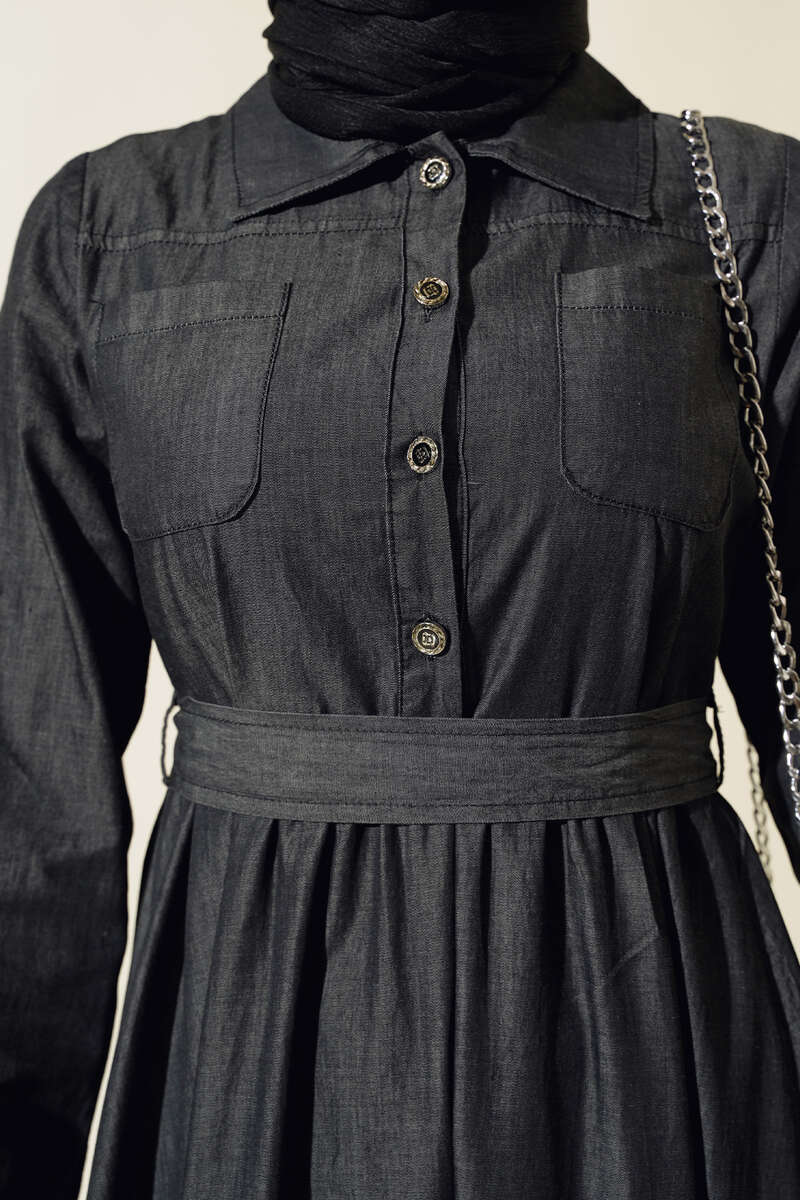 Yeni sezon kot elbisemiz sizlerle beraber. İki adet göğüs cebi bulunan elbisemiz bele kadar düğmelidir. Kol bilekleri düğmelidir. Belinde kemer köprüleri ve kendi kumaşından kuşağı bulunur. mevlana etek modelli bir elbisedir. Yakası gömlek yakadır. Elbisemizi duruşu ve şıklığıyla çok beğeneceksiniz.