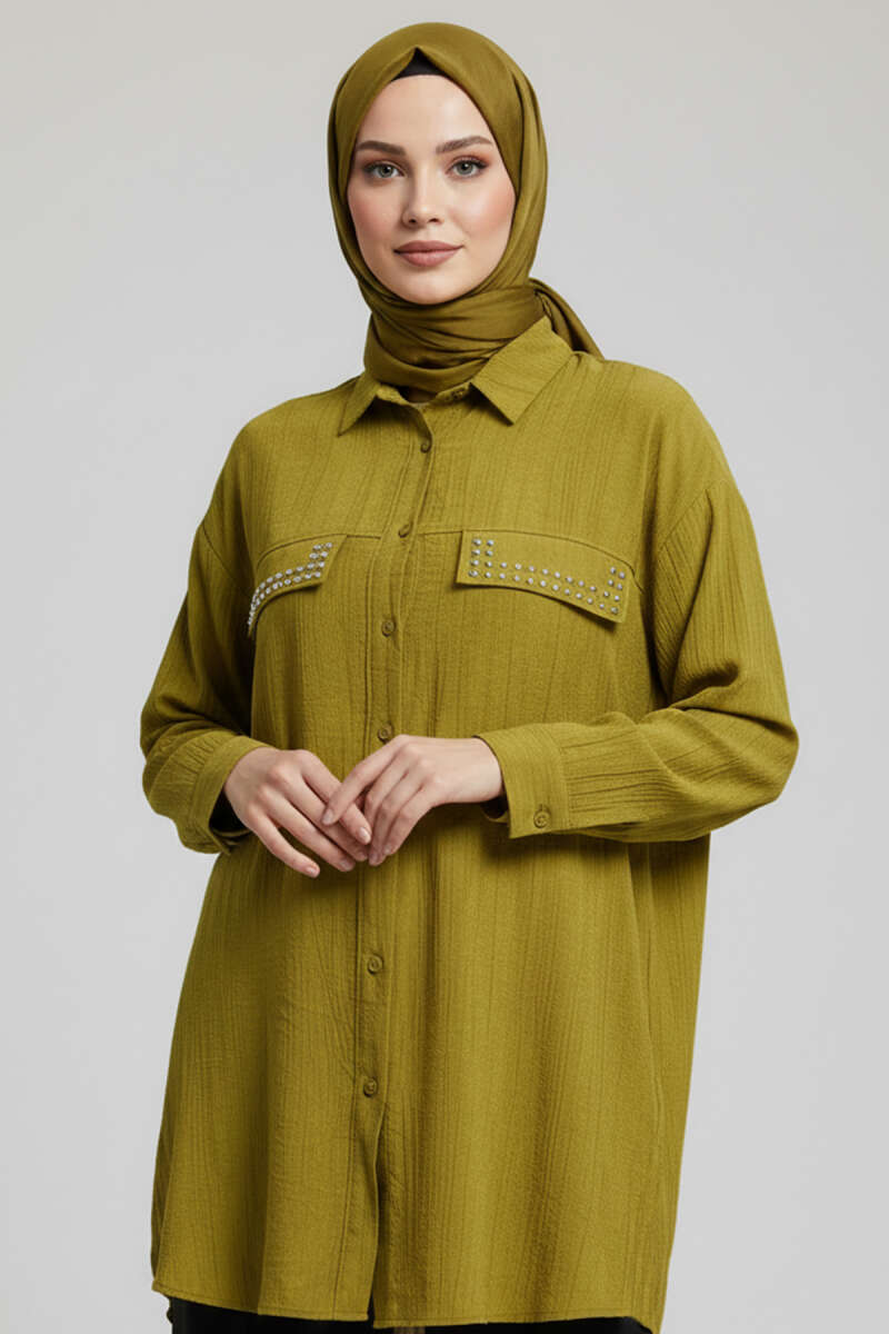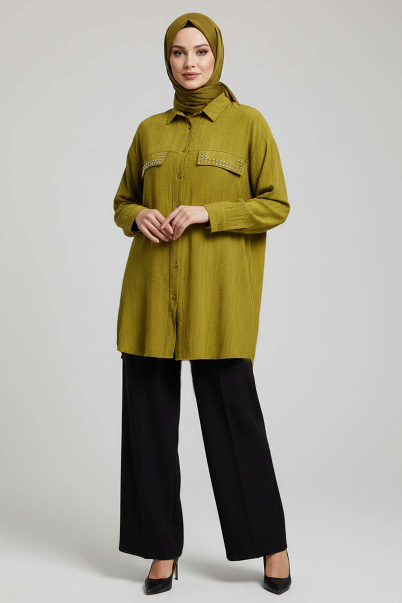Çift Cep Kapaklı Zımbalı Tunik Bej