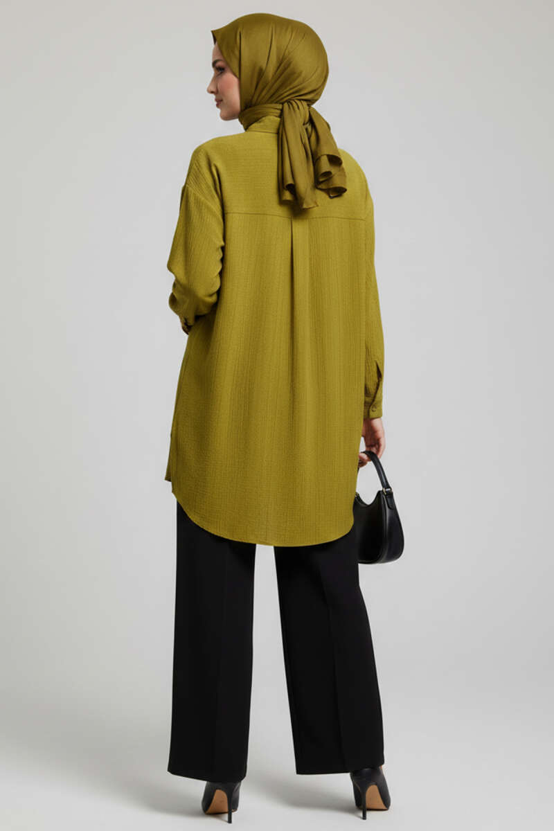 V Nervürlü Yarım Düğmeli Tunik Ekru