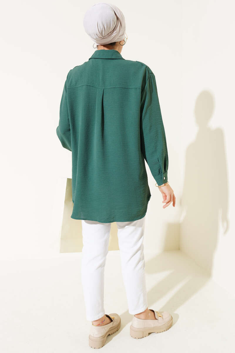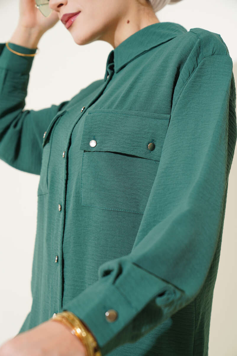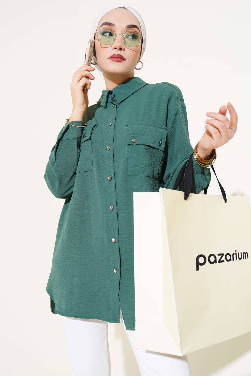 Yaka Bağlamalı Saten Gömlek Yeşil