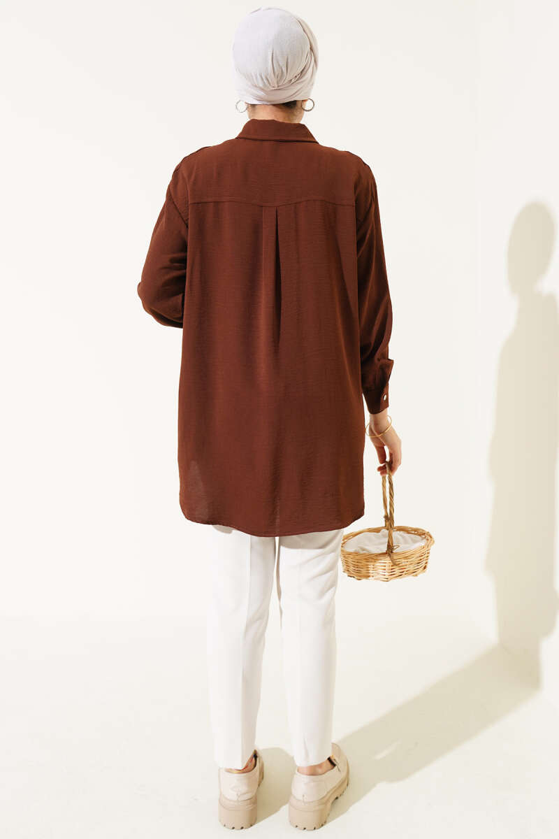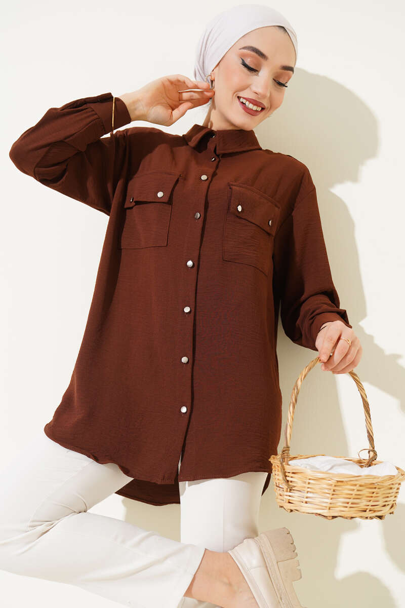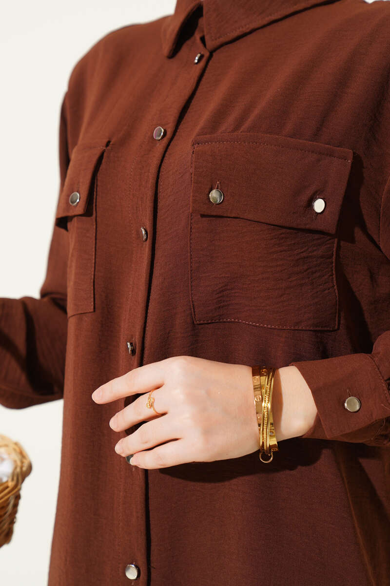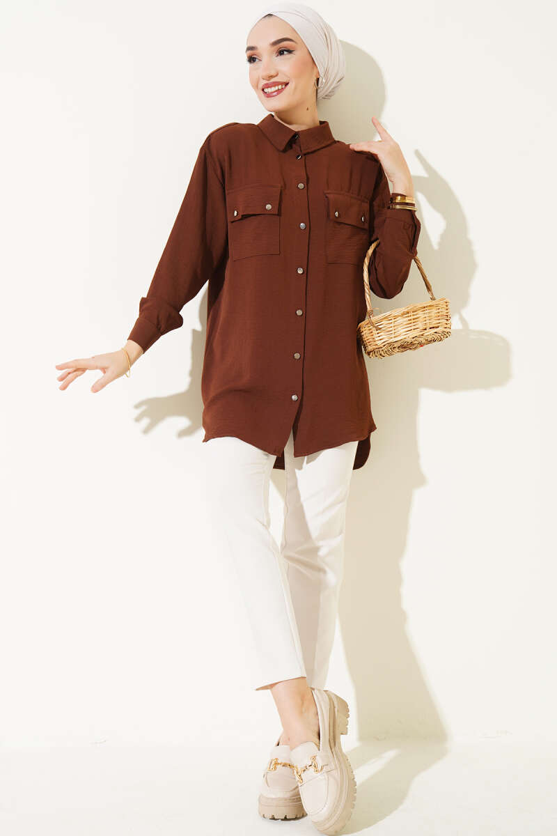 Çift Cepli Ayrobin Gömlek Kahve