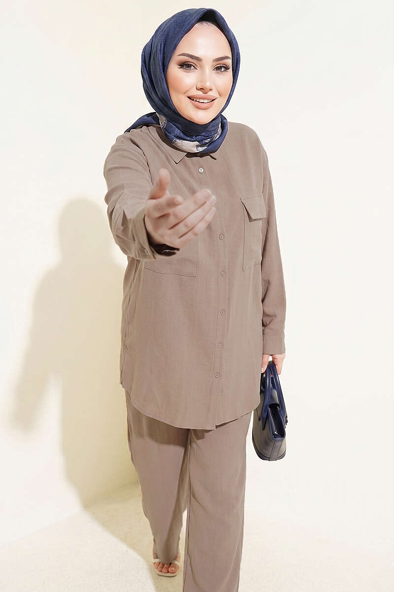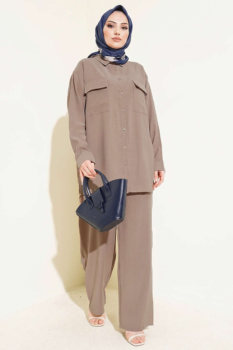 Çift Cepli Basic İkili Takım Kahve