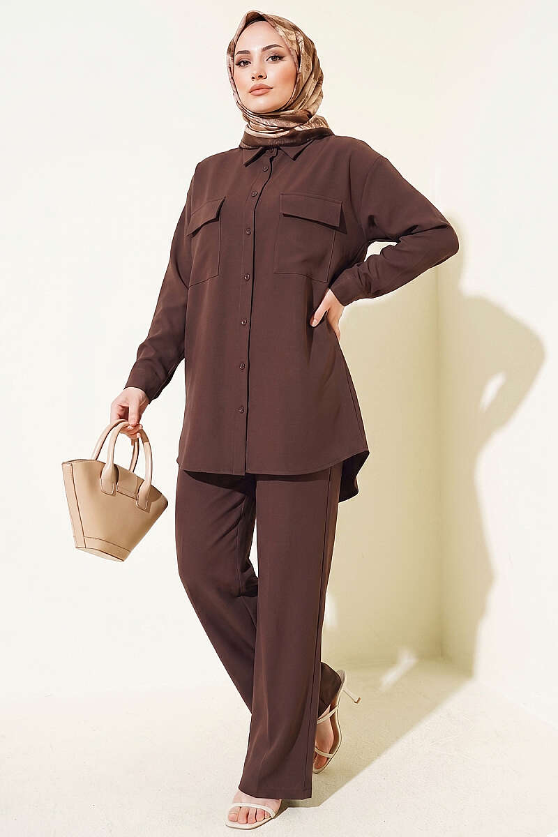 Çift Cepli Basic İkili Takım Kahve