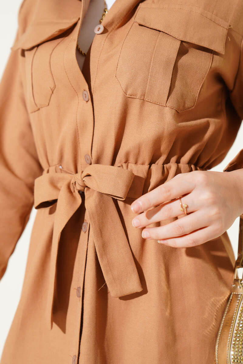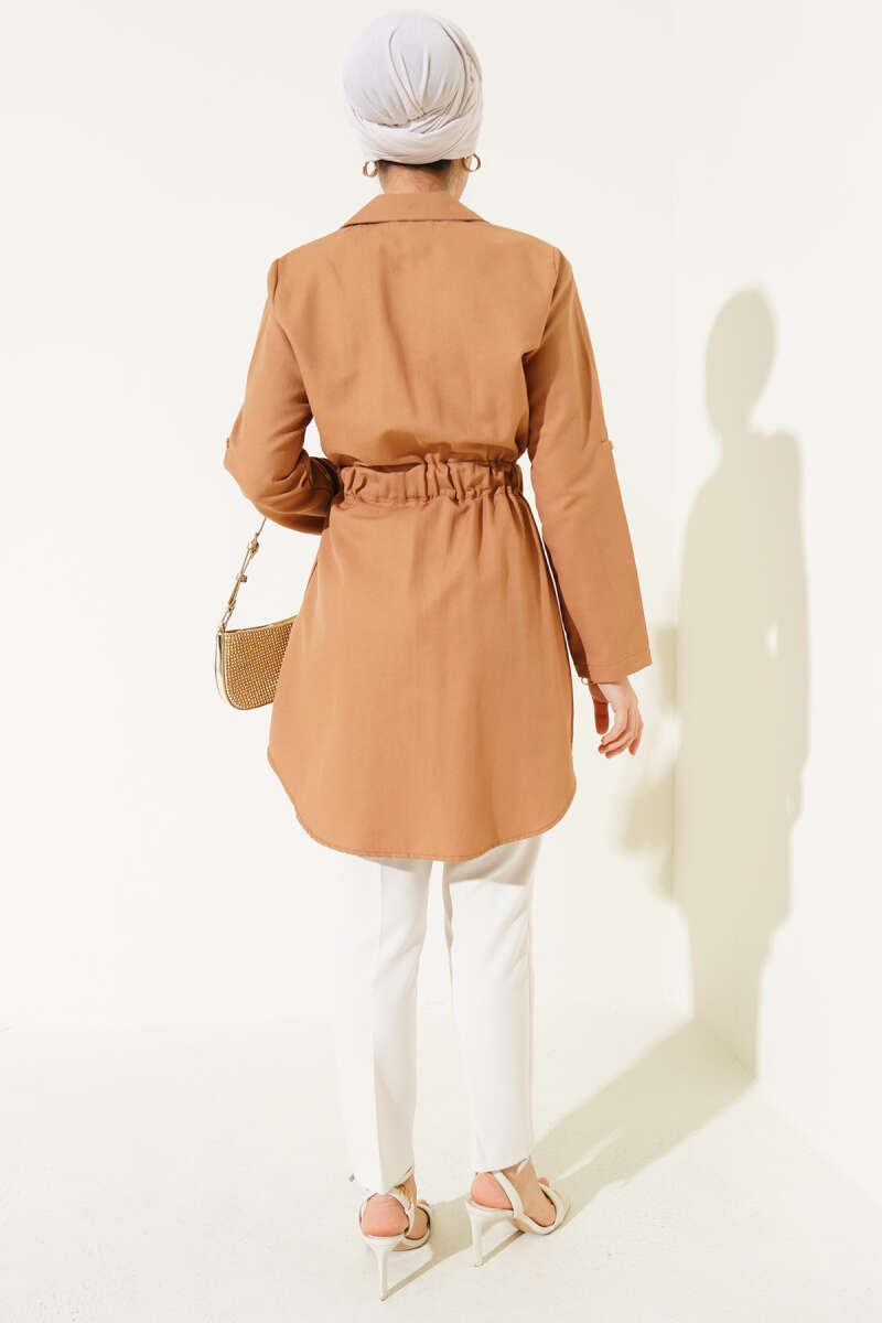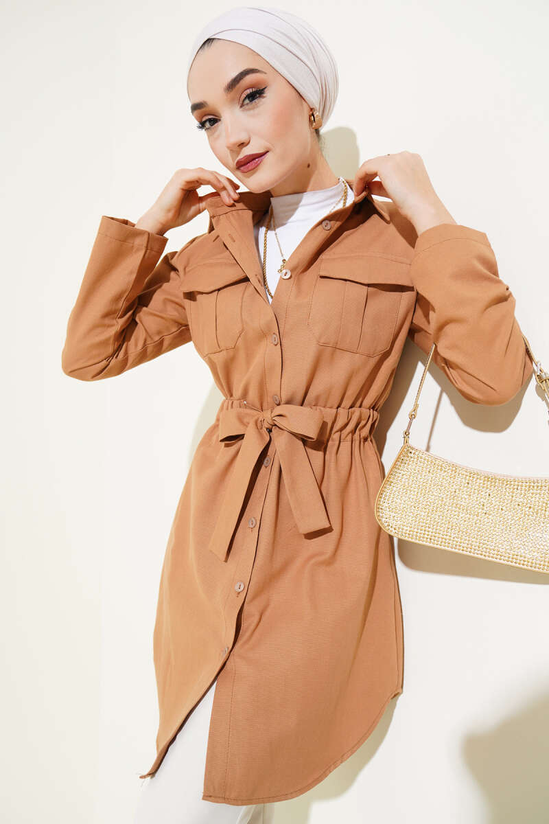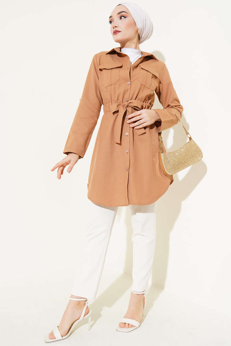 Çift Cepli Bel Lastikli Gömlek Camel