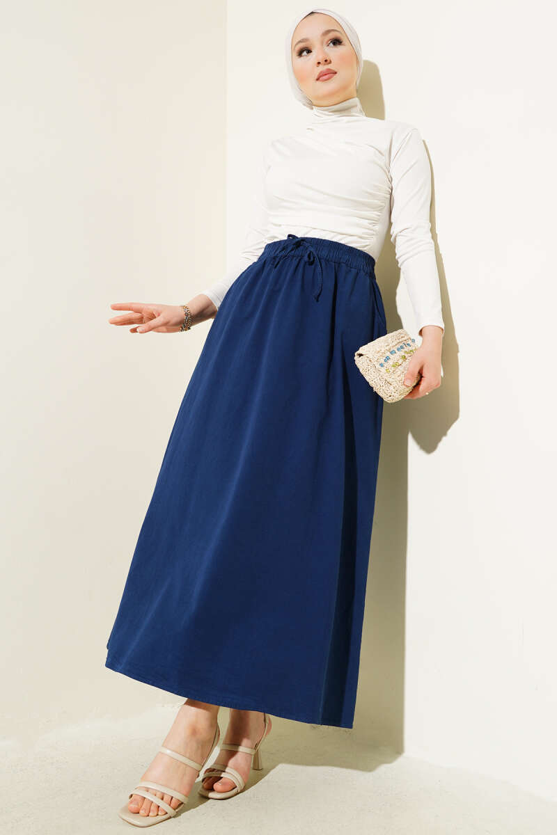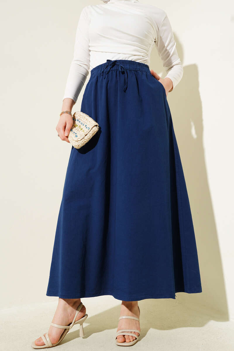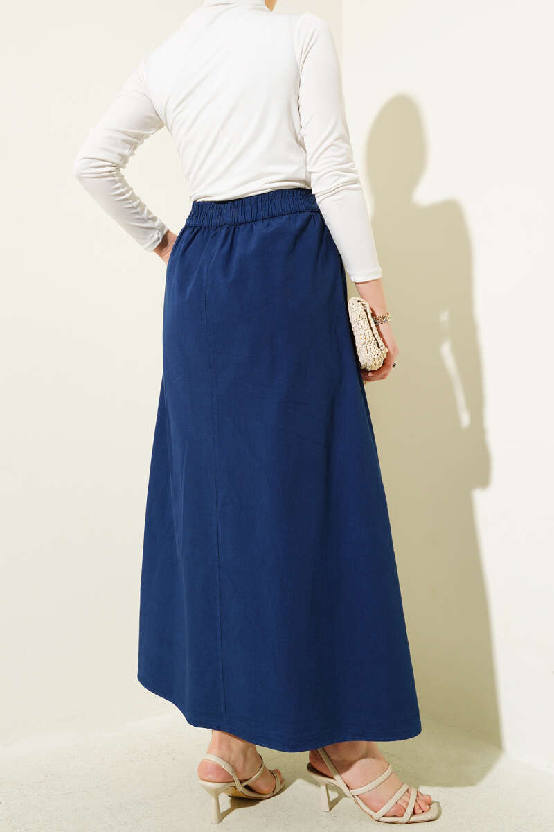 Çift Cepli Beli Lastikli Etek Lacivert