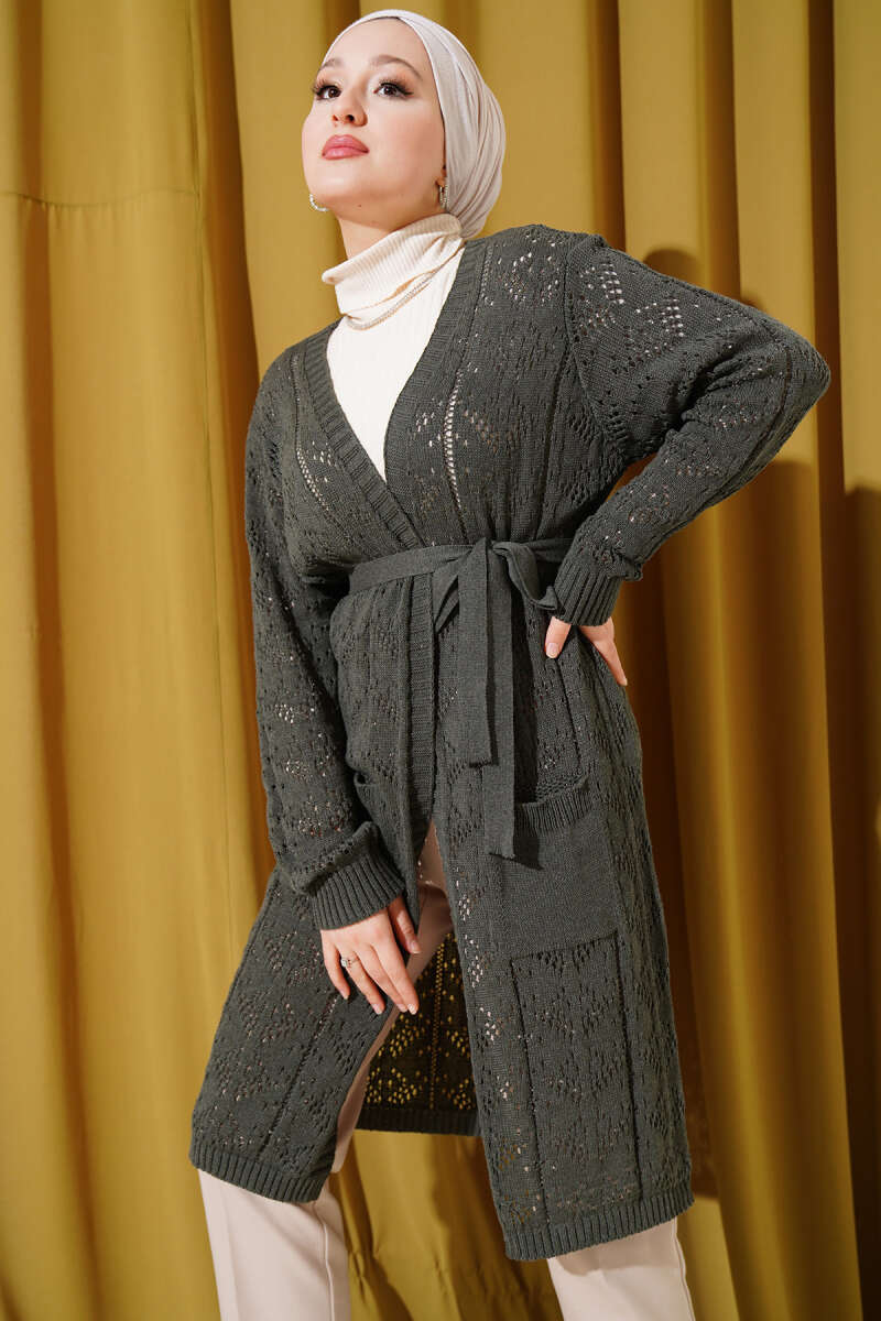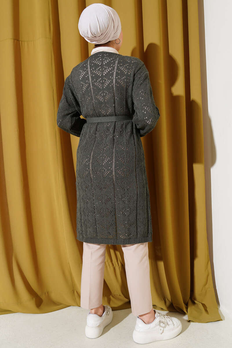 Şal Yaka Örgü Desenli Uzun Triko Hırka Bordo