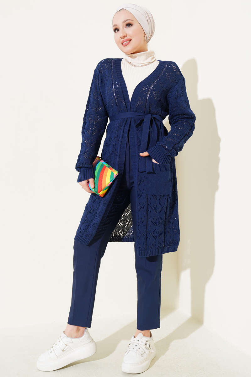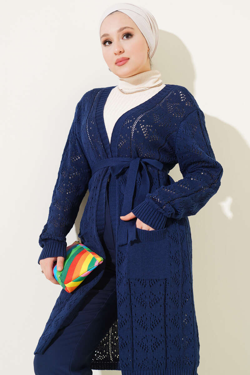 Fermuarlı Kısa Triko Hırka Lacivert