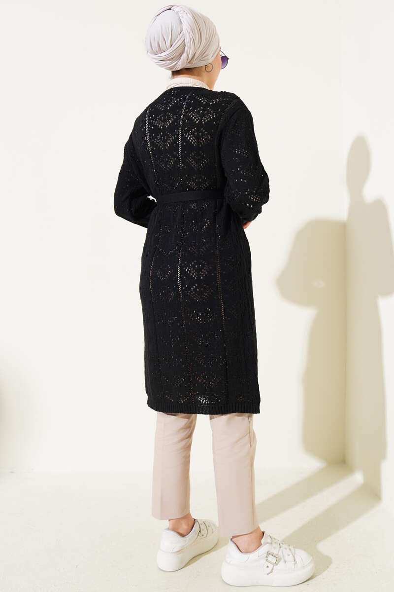 Dalmaçya Desen İncili Kısa Triko Hırka Siyah