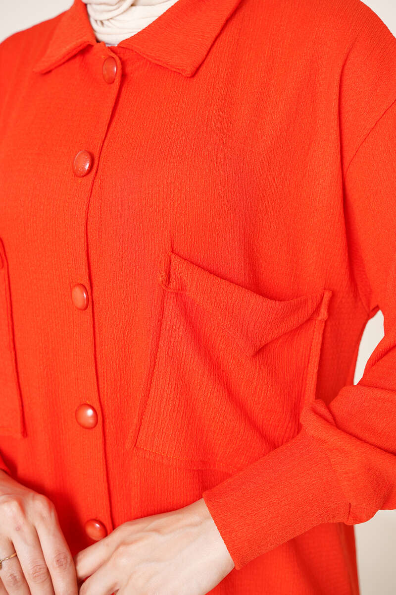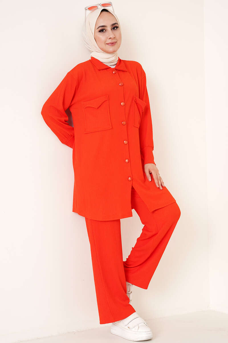 Çİft Cepli Düğmeli İkili Takım Mercan