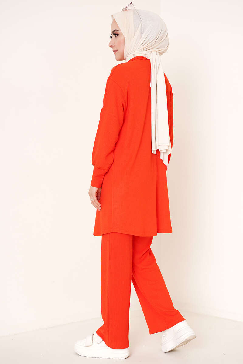 Yeni sezon ikili takım sportif bir kombin için uğraşmamanızı sağlayacaktır. İkili takımımzın tuniği düğmelidir. Klasik yakla olan tuniğimizin göğsünde bulunan iki adet cep kullanılabilmektedir. Tuniğimiz düşük omuz modeldir. İkili takımımızın pantolonu cepsizdir. Beli lastiklidir.