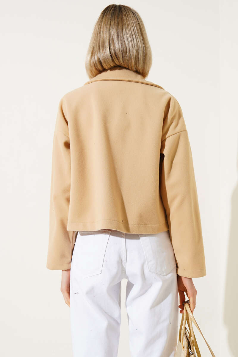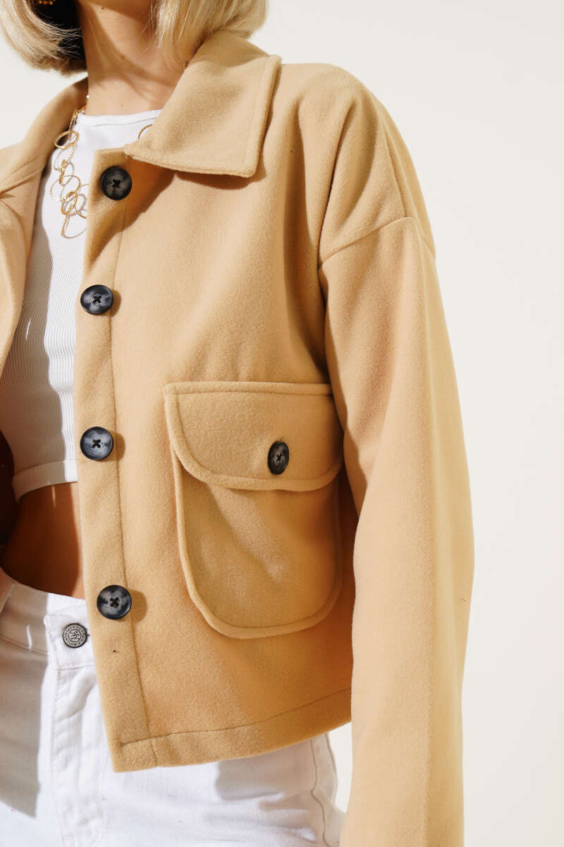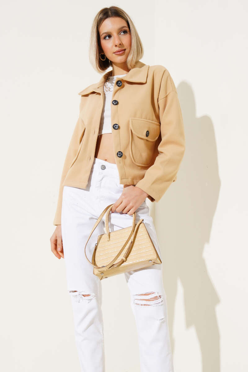 Çift Cepli Düğmeli Kısa Ceket Taş