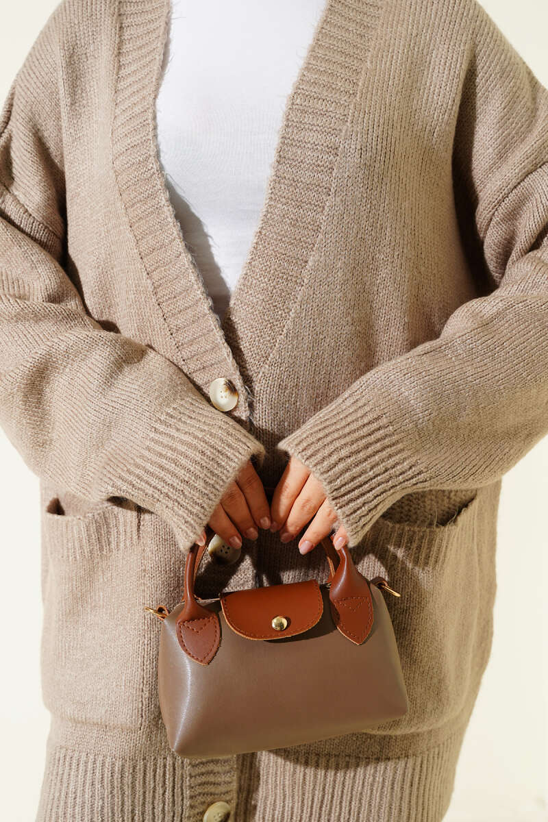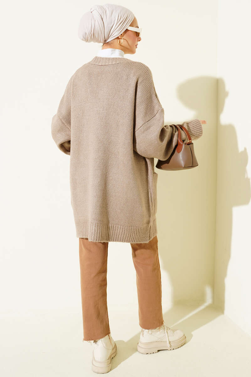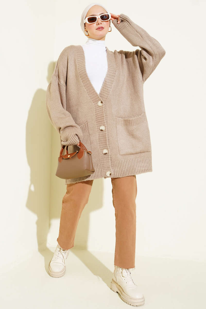 Çift Cepli Düğmeli Triko Hırka Kahve