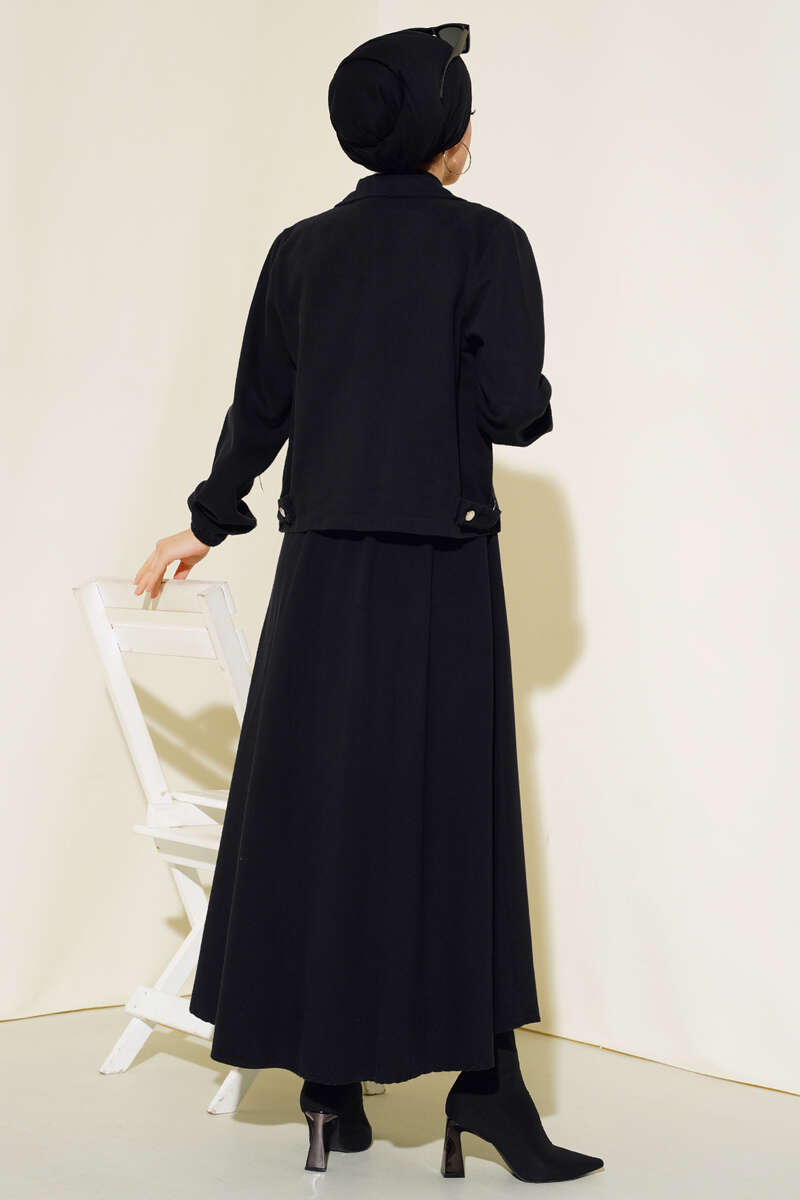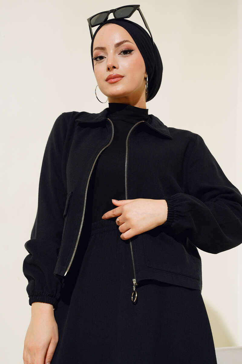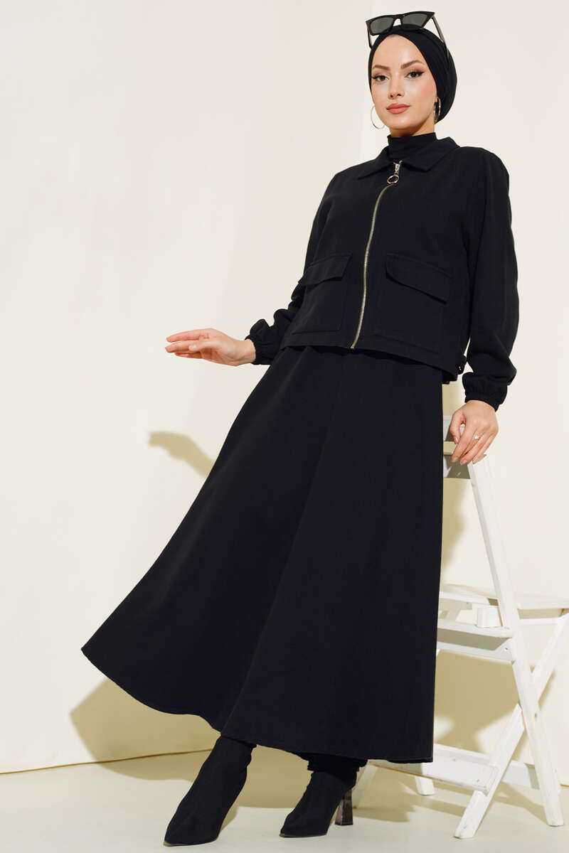 Yeni sezon ikili etek takım modelimiz sizlerle beraber. Hırkamızın iki adet kapaklı cebi bulunmaktadır. Önü boydan zincirlidir. Kol bilekleri lastiklidir. Eteğimizin beli lastiklidir. Astarsız modeldir. İkili etek takımımızın renk seçenekleri mevcuttur.